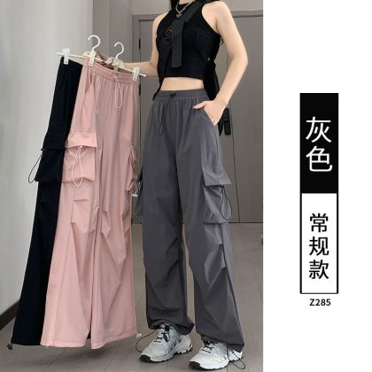American quick-drying overalls women's 2024 spring and autumn small high waist wide leg rush mountaineering sports pants