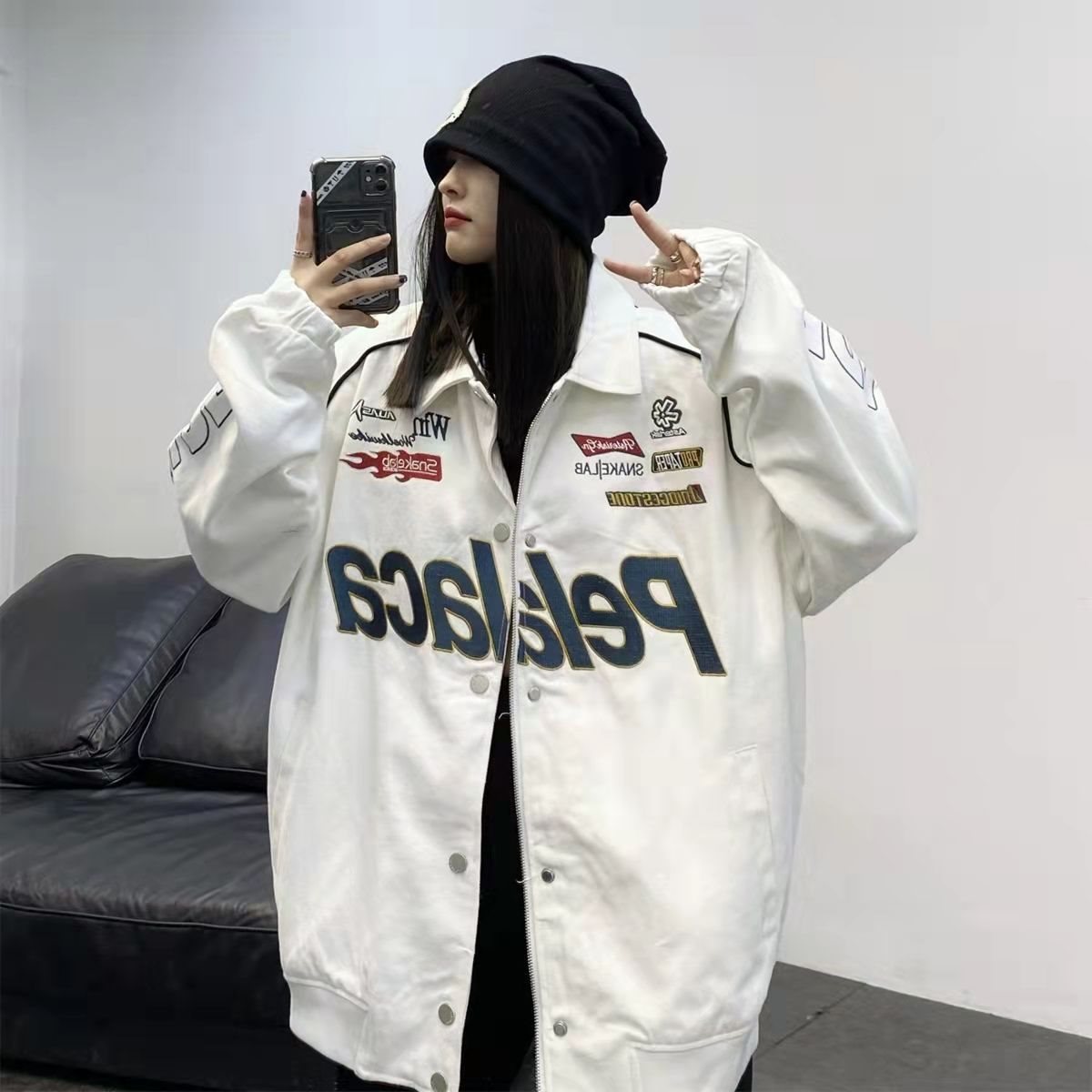 | nameOriginal | American Racing Suit Baseball Suit Women's Spring and Autumn New Retro Loose Printed All-match Jacket Biker Jacket Ins Trendy |