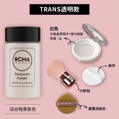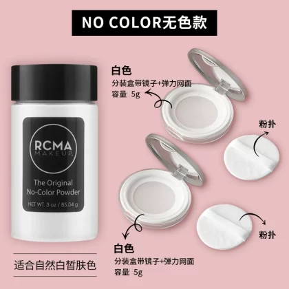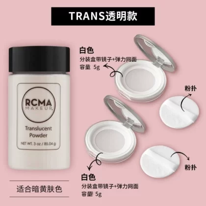 مسحوق فضفاض من RCMA الأمريكي معبأ في صندوق معبأ بالفلفل الصغير الشفاف وطحن زيت البشرة للتحكم في زيت المكياج طويل الأمد ومسحوق الفلفل الأسود