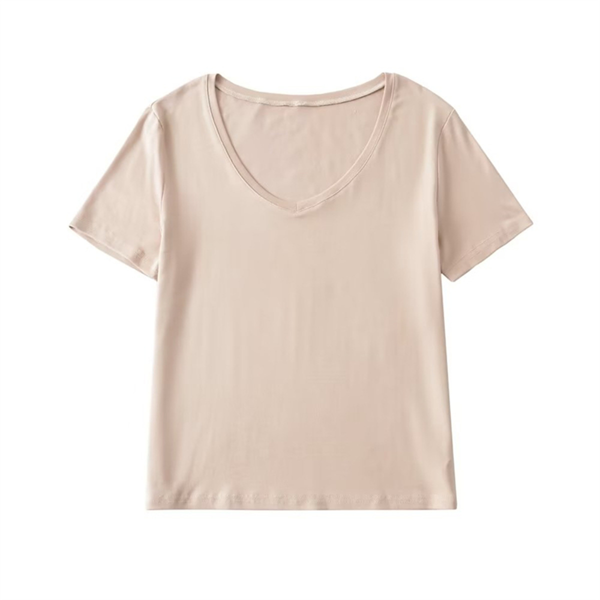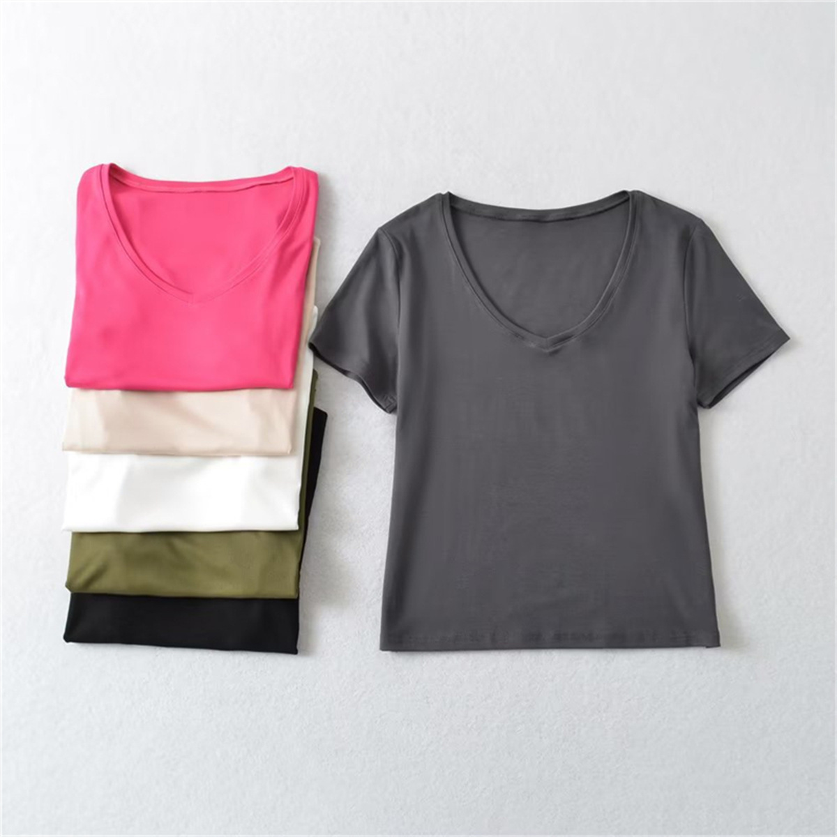 American Retro Basic V-neck Loose Short-sleeved T-shirt Women's Slimming Solid Color Inner Shoulder Base Shirt Top New