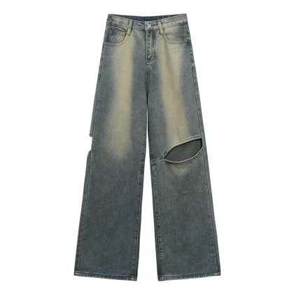 | nameOriginal | American retro color block design high waist jeans |