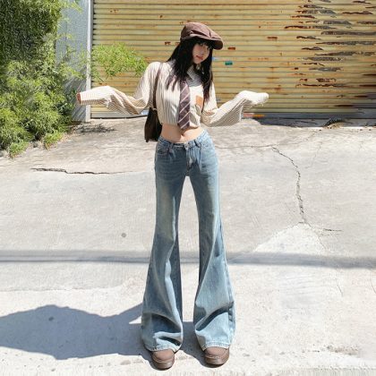 | nameOriginal | American Retro hot girl low waist flared pants fashionable all-match slimming mopping jeans women's fashionable & trousers lengthened |