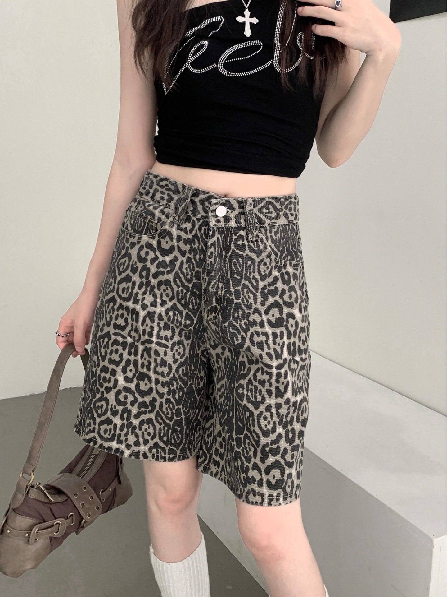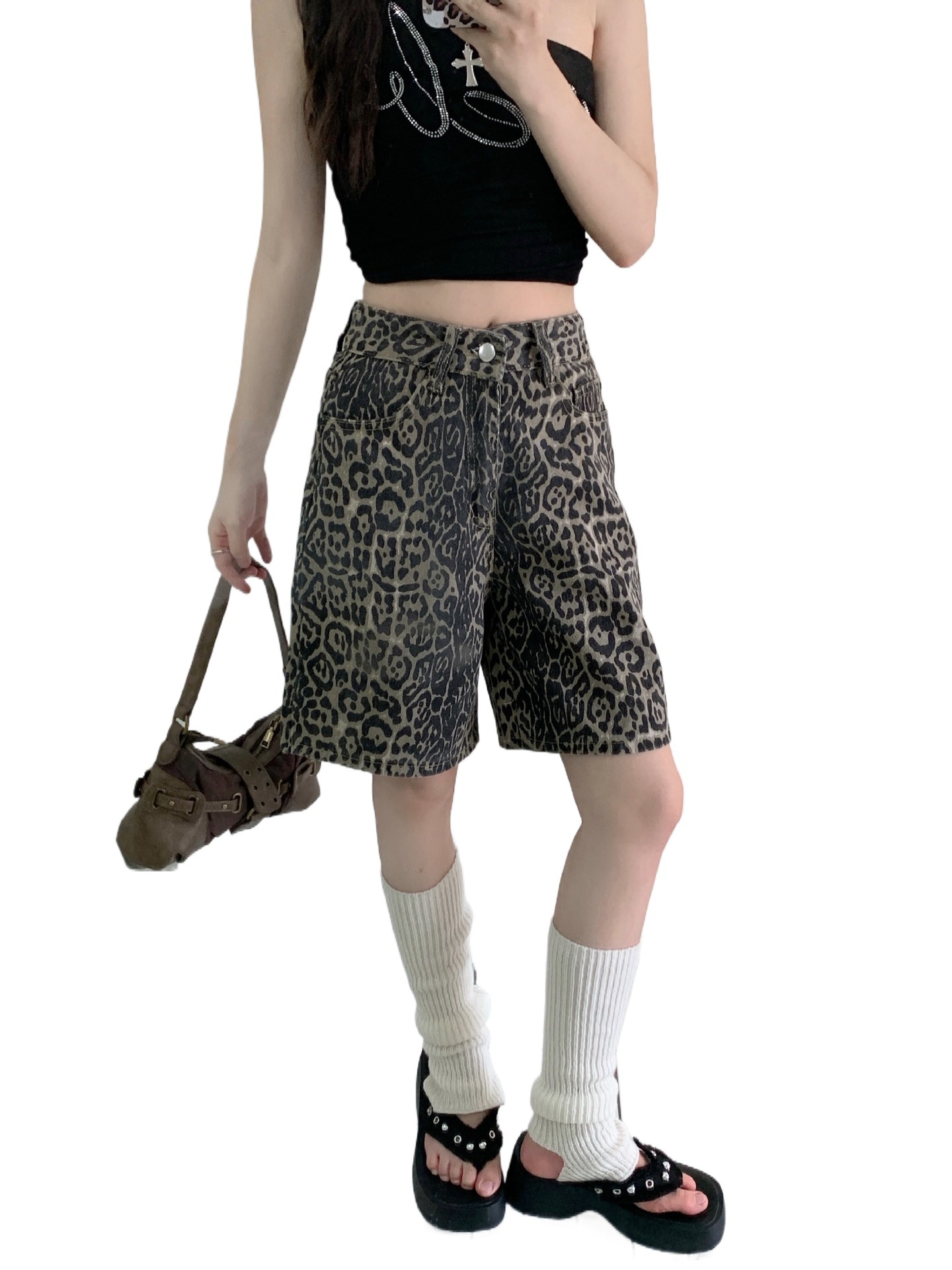 | nameOriginal | American Retro Leopard Denim Shorts Fashion Spice Girl Leopard Niche Design High Waist All-match Straight Pants |