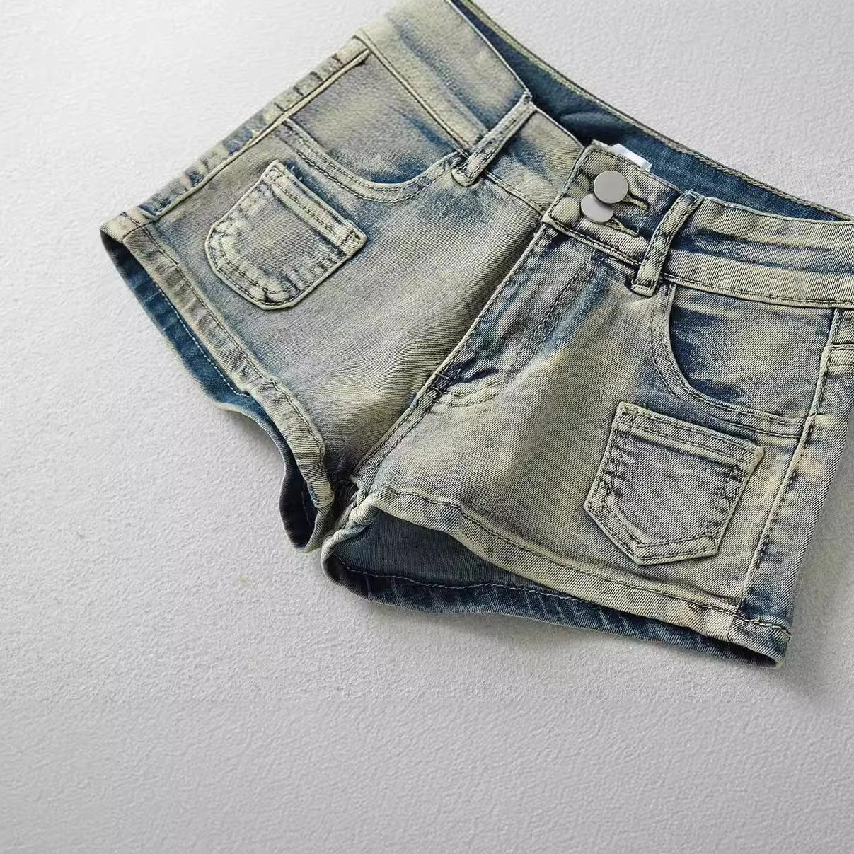 | nameOriginal | American Retro Style Dressed Low Waist Denim Shorts Women's 2024 Summer Stretch Tight Straight Wide Leg Pants |
