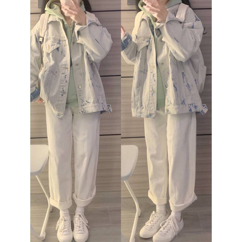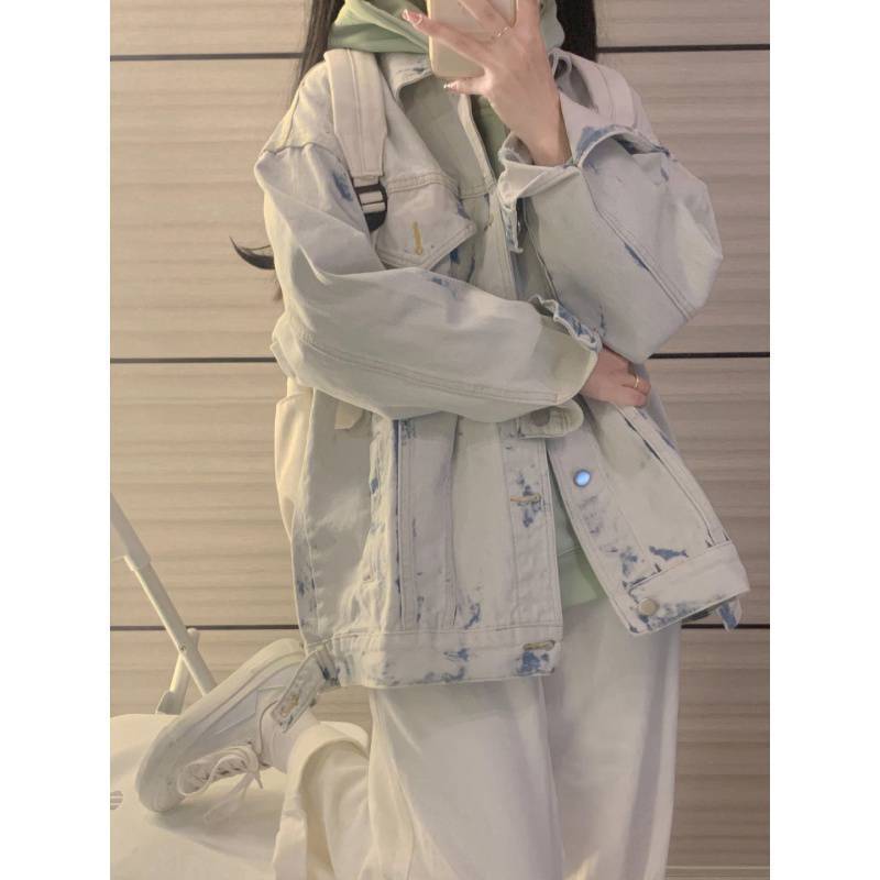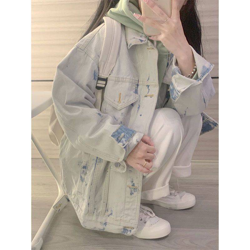 | nameOriginal | American retro tie-dyed washed Denim coat for women Spring and Autumn 2023 New loose small shirt long sleeve top |