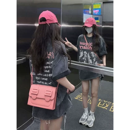 | nameOriginal | American retro washed distressed short-sleeved T-shirt for women summer loose ins trendy high-end design niche pure cotton top |