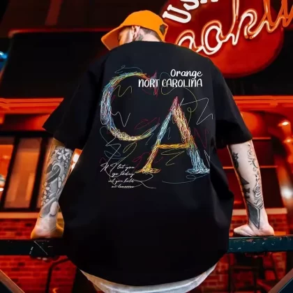 | nameOriginal | American street hip-hop trendy brand short-sleeved T-shirt for men ins trend letters loose plus fat large size fat high street half-sleeved |