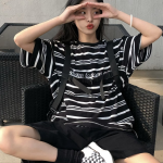 American striped short-sleeved T-shirt for men and women with the same design, street ins niche summer large size new pure cotton top
