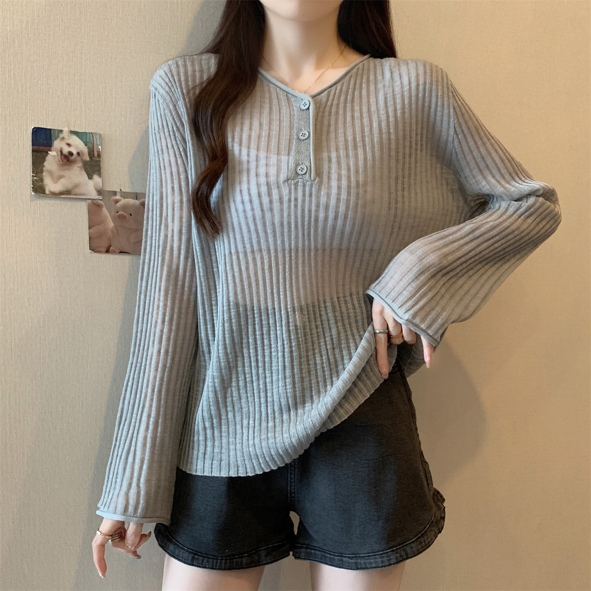 | nameOriginal | American Style 2024 Summer Korean Style Loose Button All-match Slub Linen Thin Sunscreen Blouse Knitted Long-sleeved Women's Top |