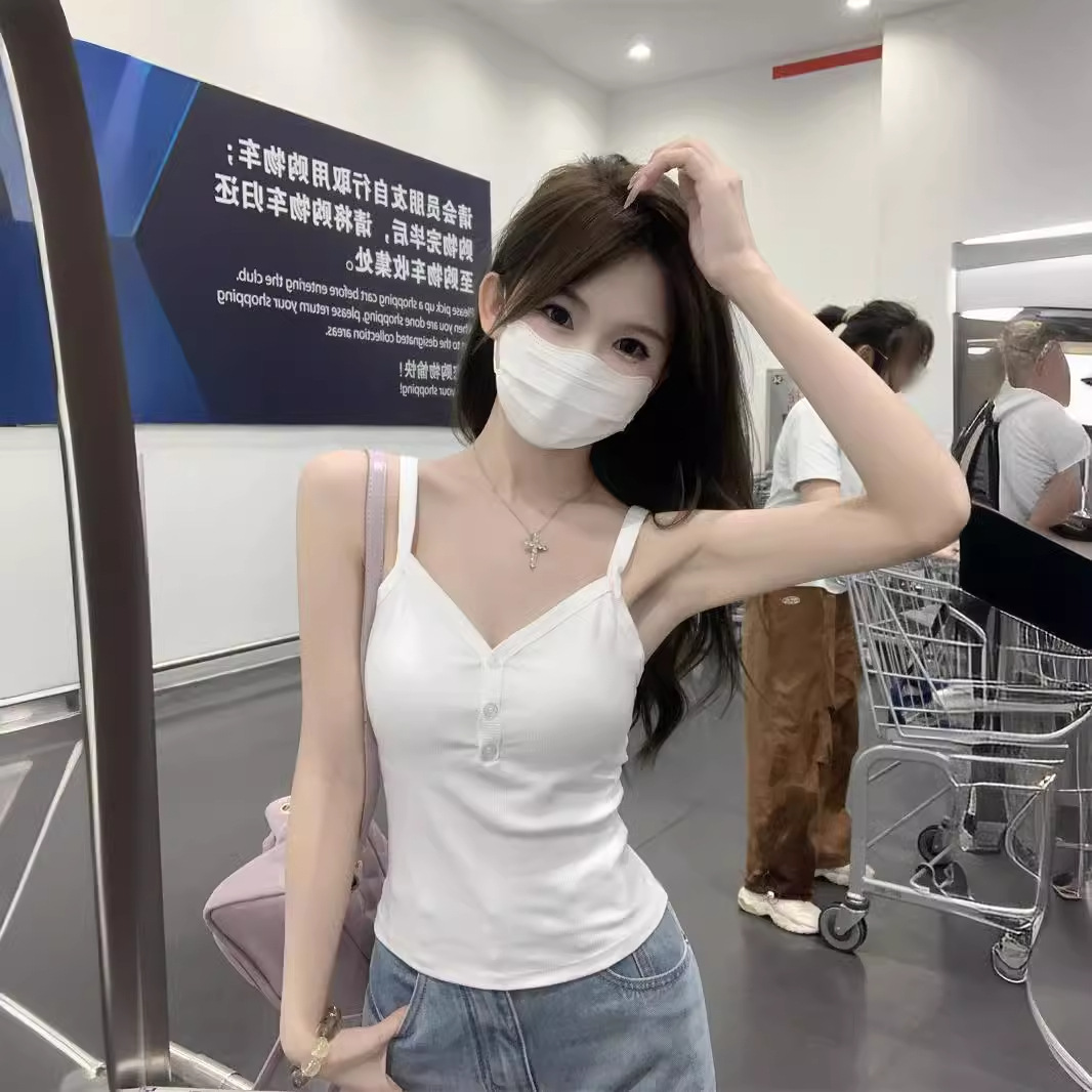 | nameOriginal | American Style 2024 Summer Korean Style Slim-fit Slimming V-neck Button Design All-match Sling Inner Vest Top Women |