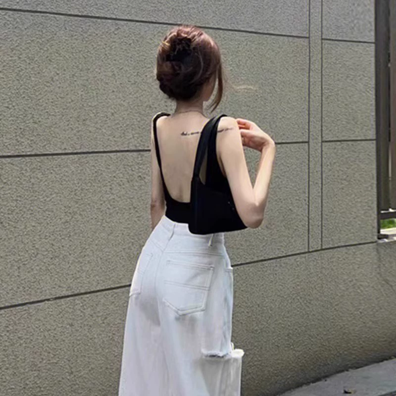 American style backless camisole for women's summer outer wear, beautiful straps, breast pads, bra, one-piece underwear, bottoming, inner top
