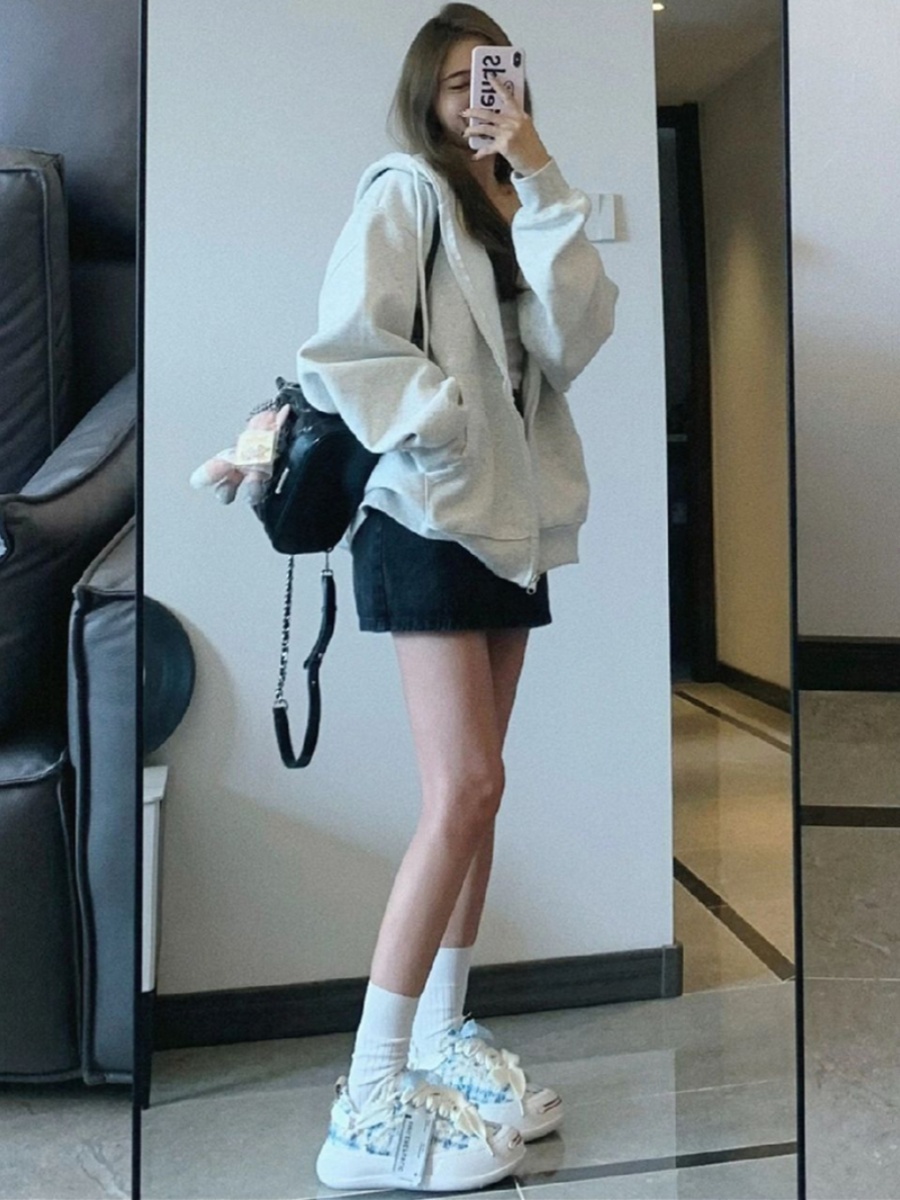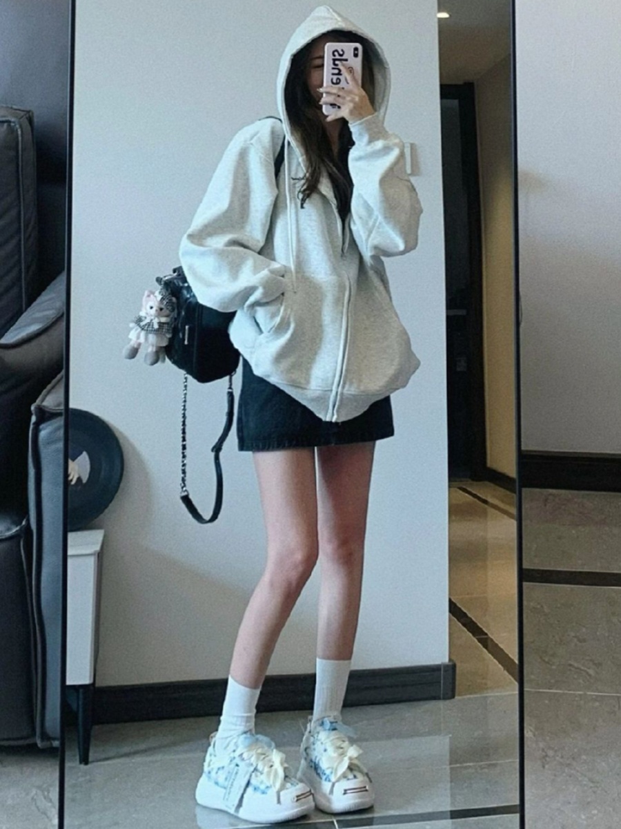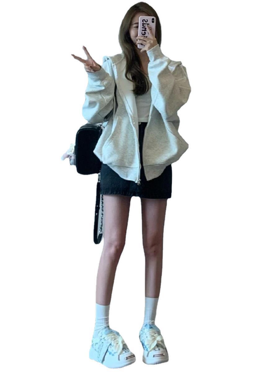| nameOriginal | American-style gray white sweater women's spring and autumn oversize retro hooded thin coat loose lazy cardigan top |