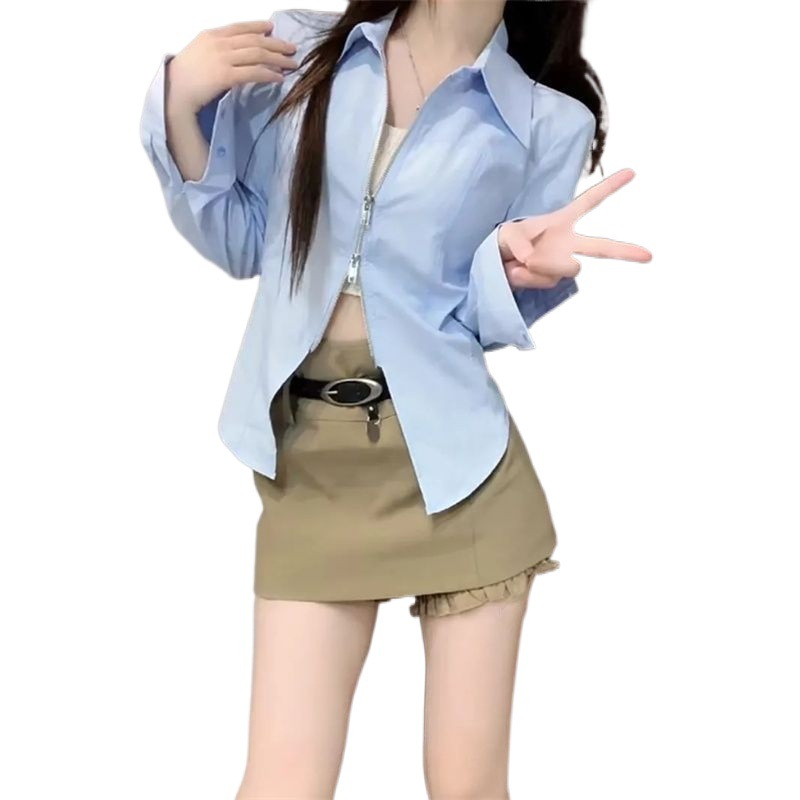 | nameOriginal | American Style Hot Girl Retro High-end Short Suit Jacket Collar Zipper Shirt Skirt Spring Three-piece Set |