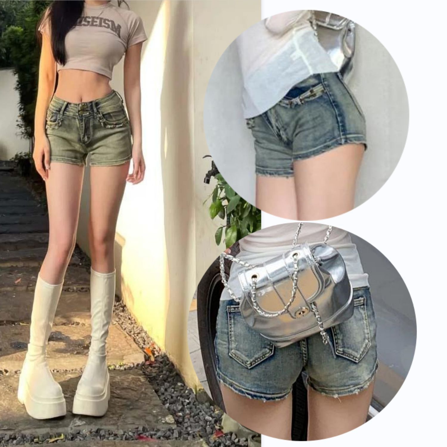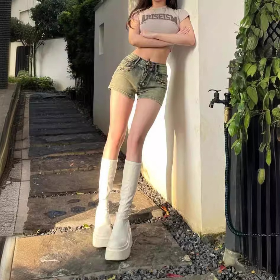 | nameOriginal | American Style Hot Girl Sexy Low Waist Denim Super Shorts Women's 2024 Summer New Slim Fit Slimming Sheath Wide Leg Hot Pants |