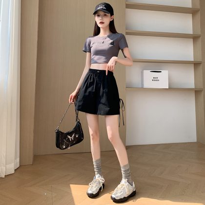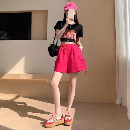 | nameOriginal | American Style Overalls Women's 2024 Summer New Wash Cotton High Waist Shorts Sports Loose Casual Wide Leg Pants |