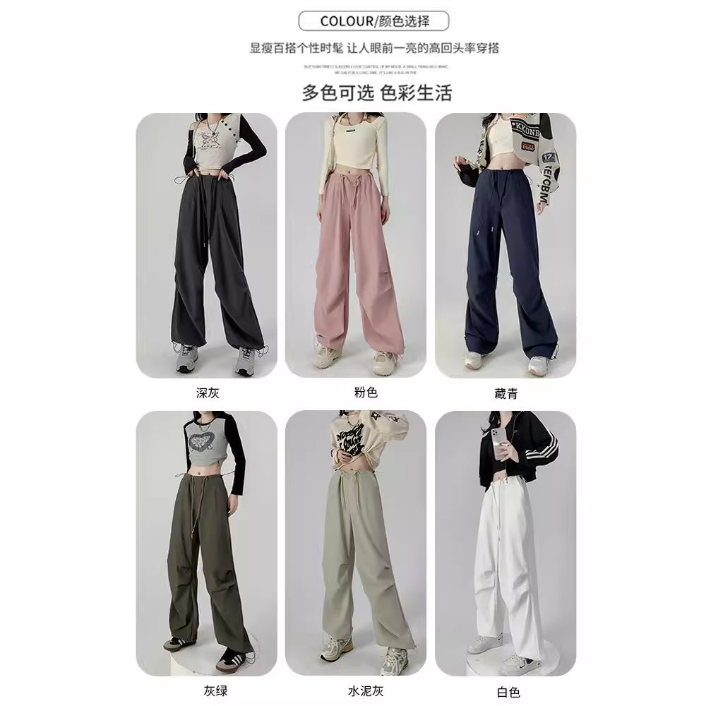 | nameOriginal | American Style Overalls Women's Pants Summer Thin Women's Retro High Waist Wide Leg Pants Sweatpants Straight Quick-drying Sports Pants |