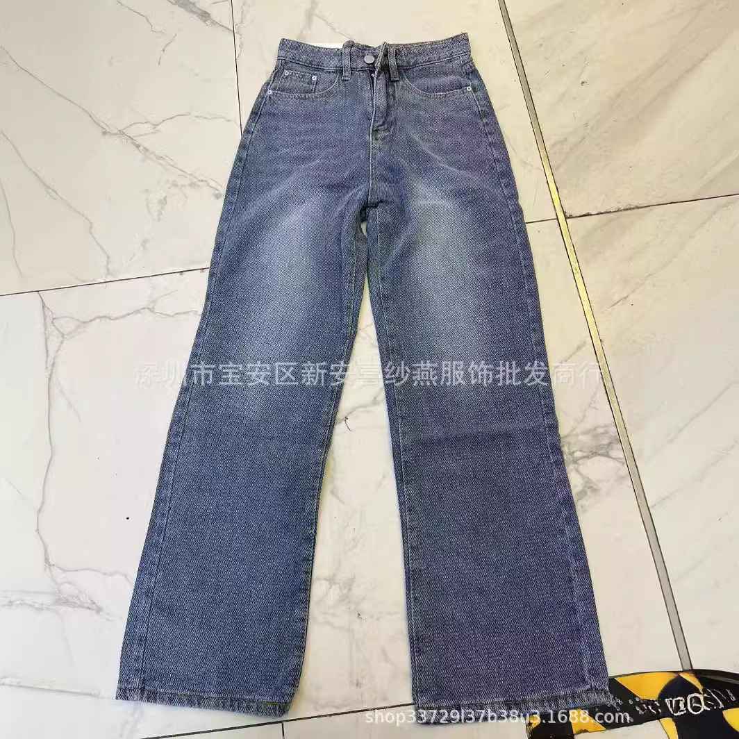 | nameOriginal | American style retro blue straight jeans Women's Spring and Autumn design sense niche high waist loose wide leg mop long pants |