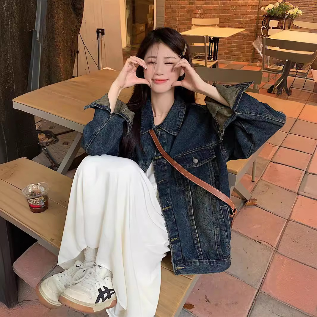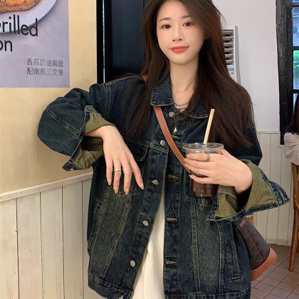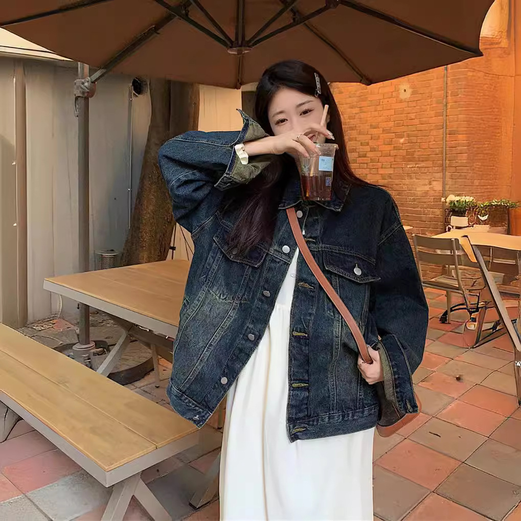 | nameOriginal | American Style Retro Denim Jacket Women's Summer New Loose Washed Old Jacket Elegant Single Long Sleeve Top |