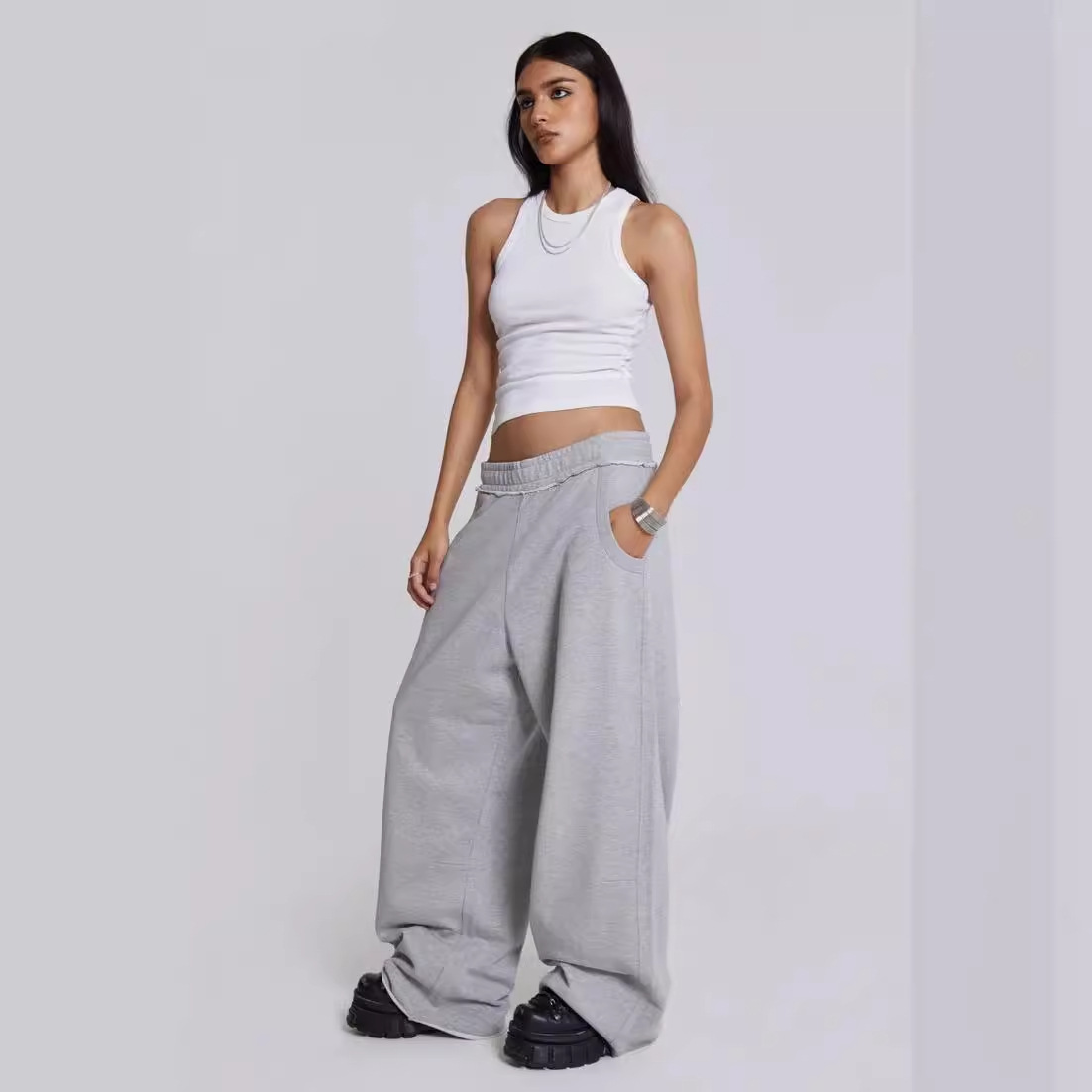 | nameOriginal | American-style Retro Grey Casual Sweat Pants Women's High Waist Loose Slimming Rap Edge Casual Pants Cross-border AliExpress |