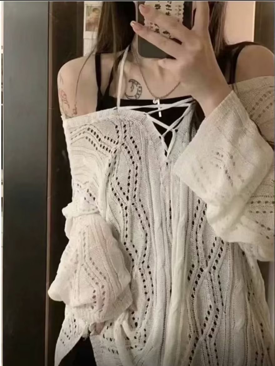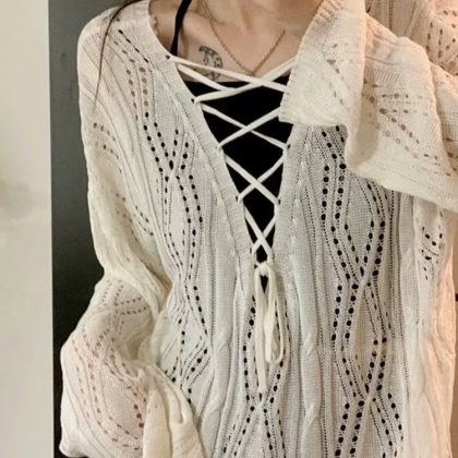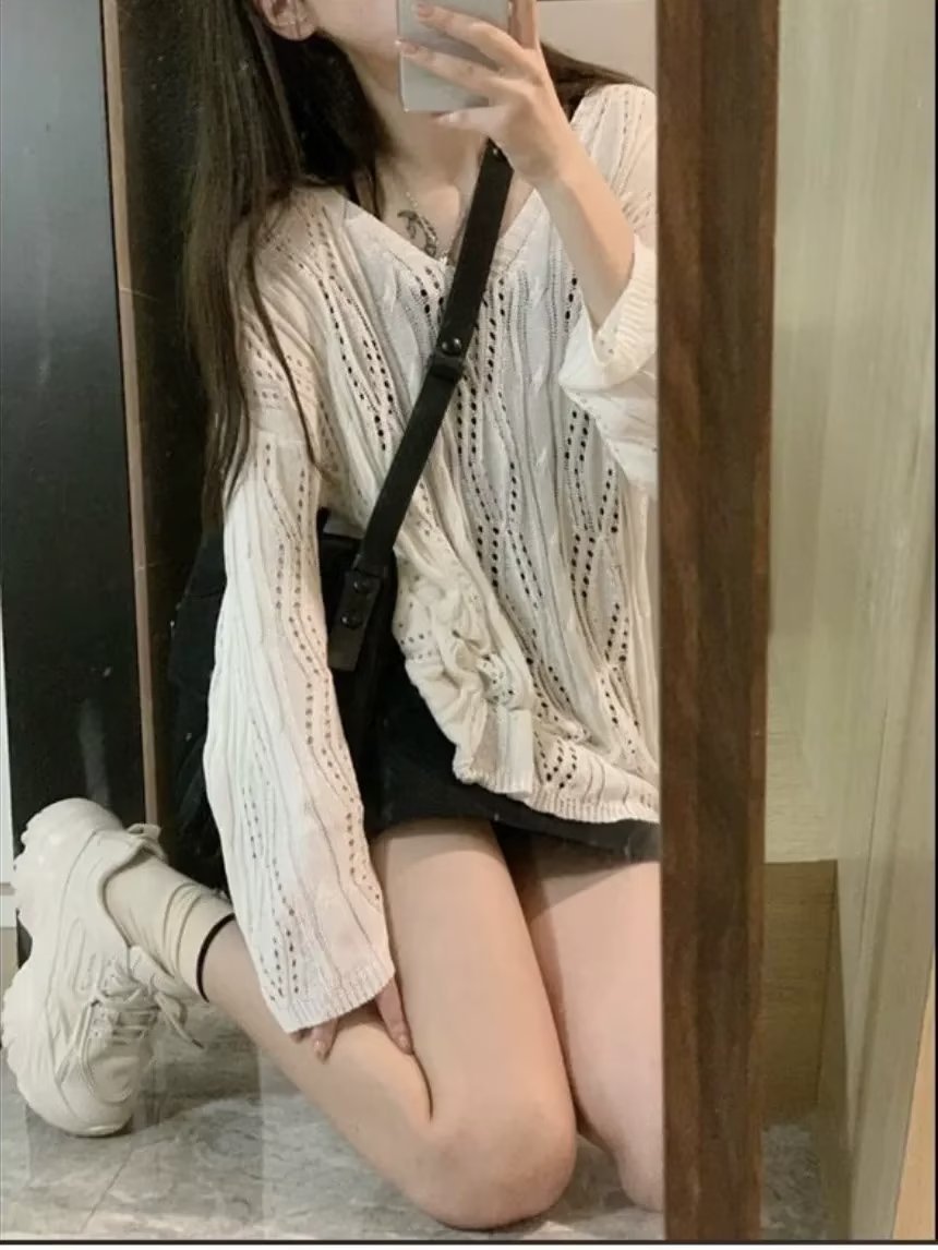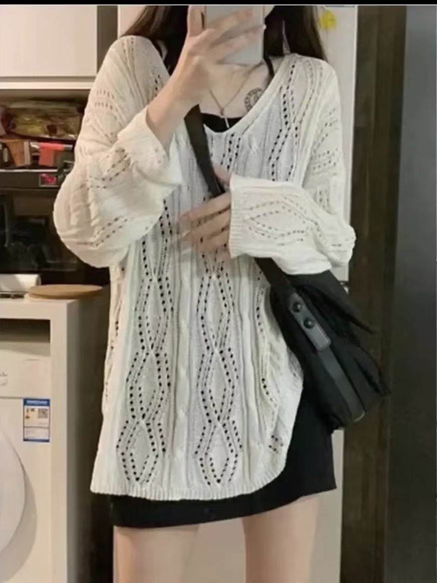 | nameOriginal | American Style Retro Lazy Style Hollow Out Blouse Women's Summer Thin Spice Girl V-neck Slim Look Loose Knitted Top |