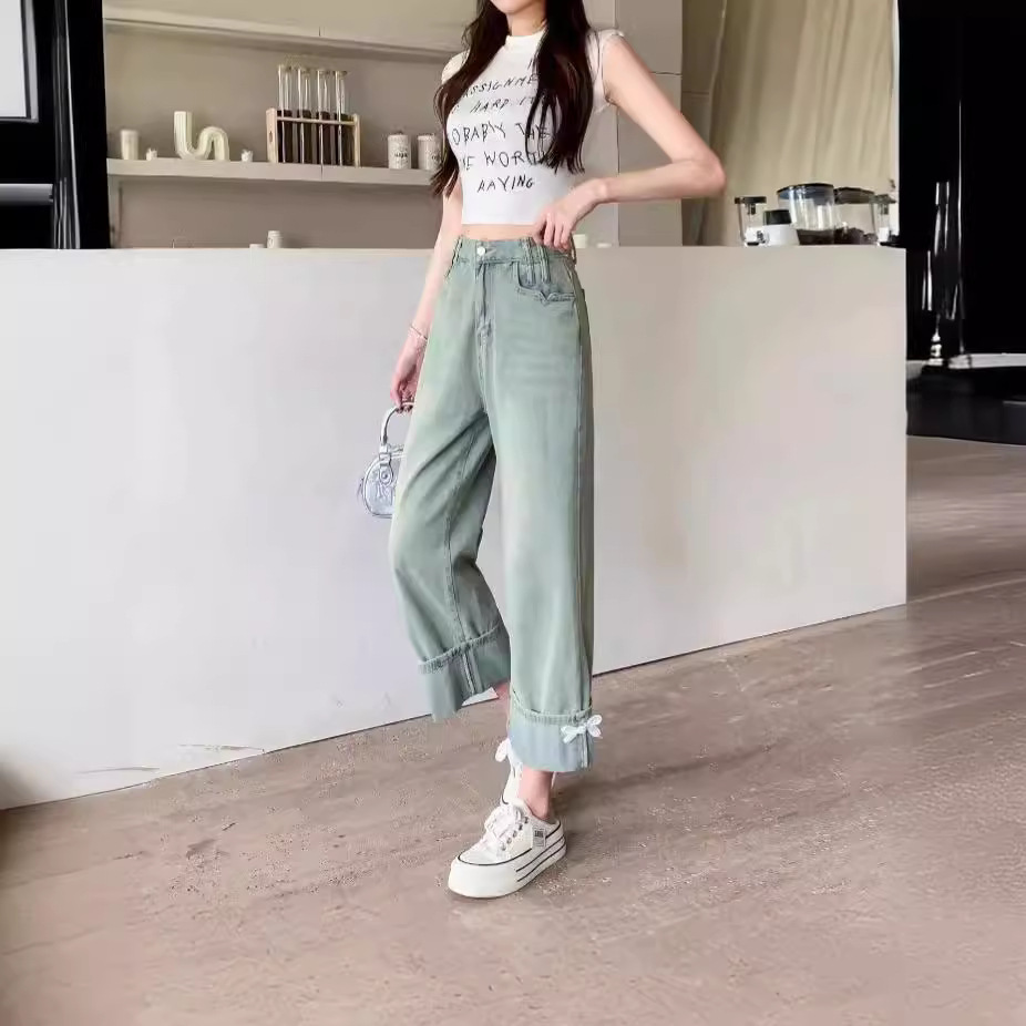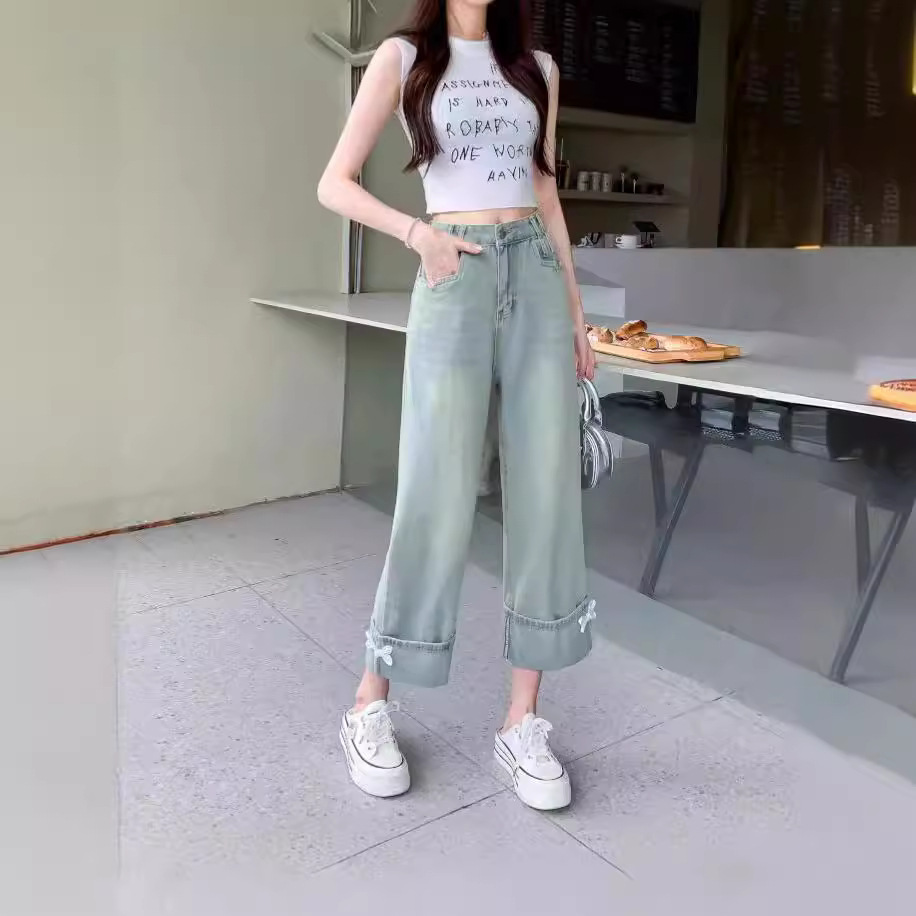 | nameOriginal | American Style Small Wide Leg Jeans Women's Summer Thin High Waist 2024 Light Color 89 Loose Straight Pants |