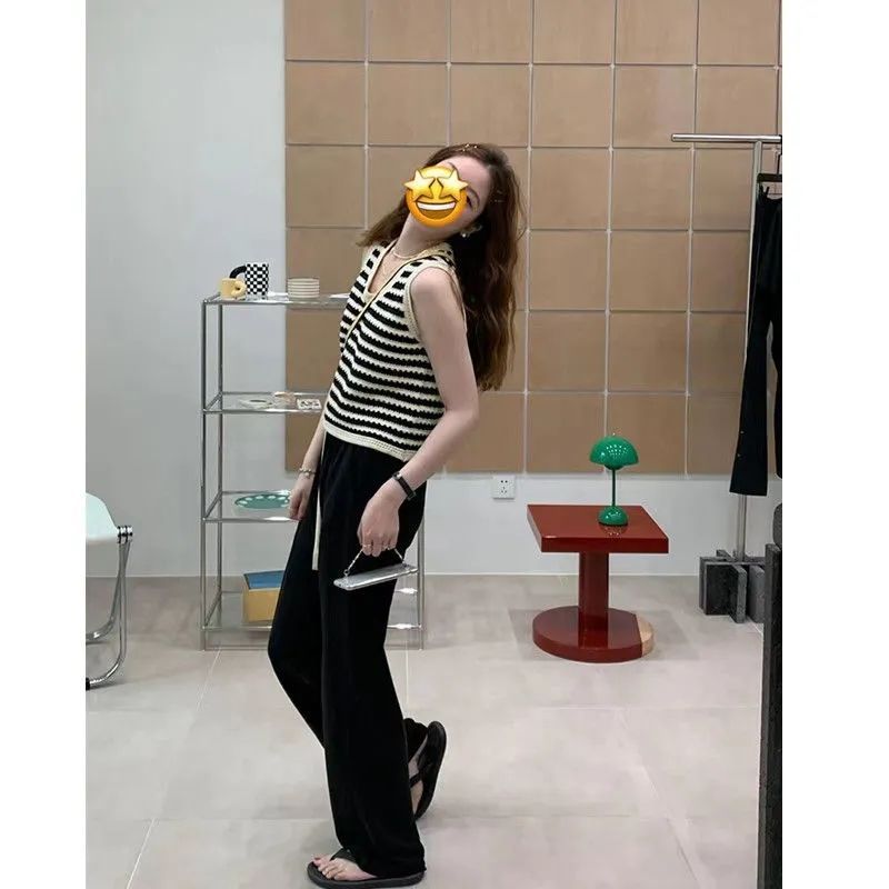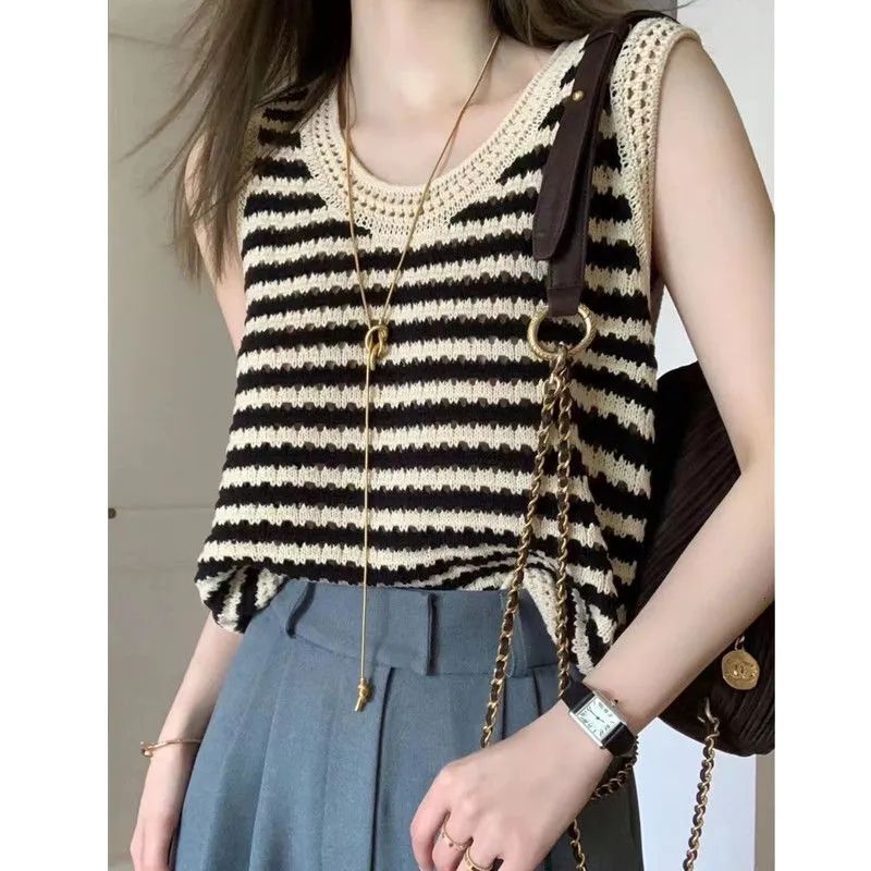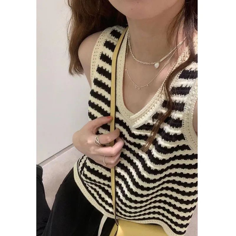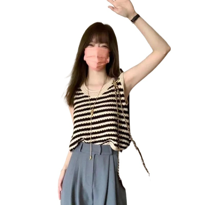 | nameOriginal | American-style Striped Knitted Camisole Women's Summer and Summer Outer Wearing Design Niche Ice Silk Waistband Sleeveless Top |