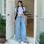 | nameOriginal | American Style Thin Loose Wide-leg Jeans Women's 2024 Summer New High Waist Dipped Straight Slim-looking Trousers |