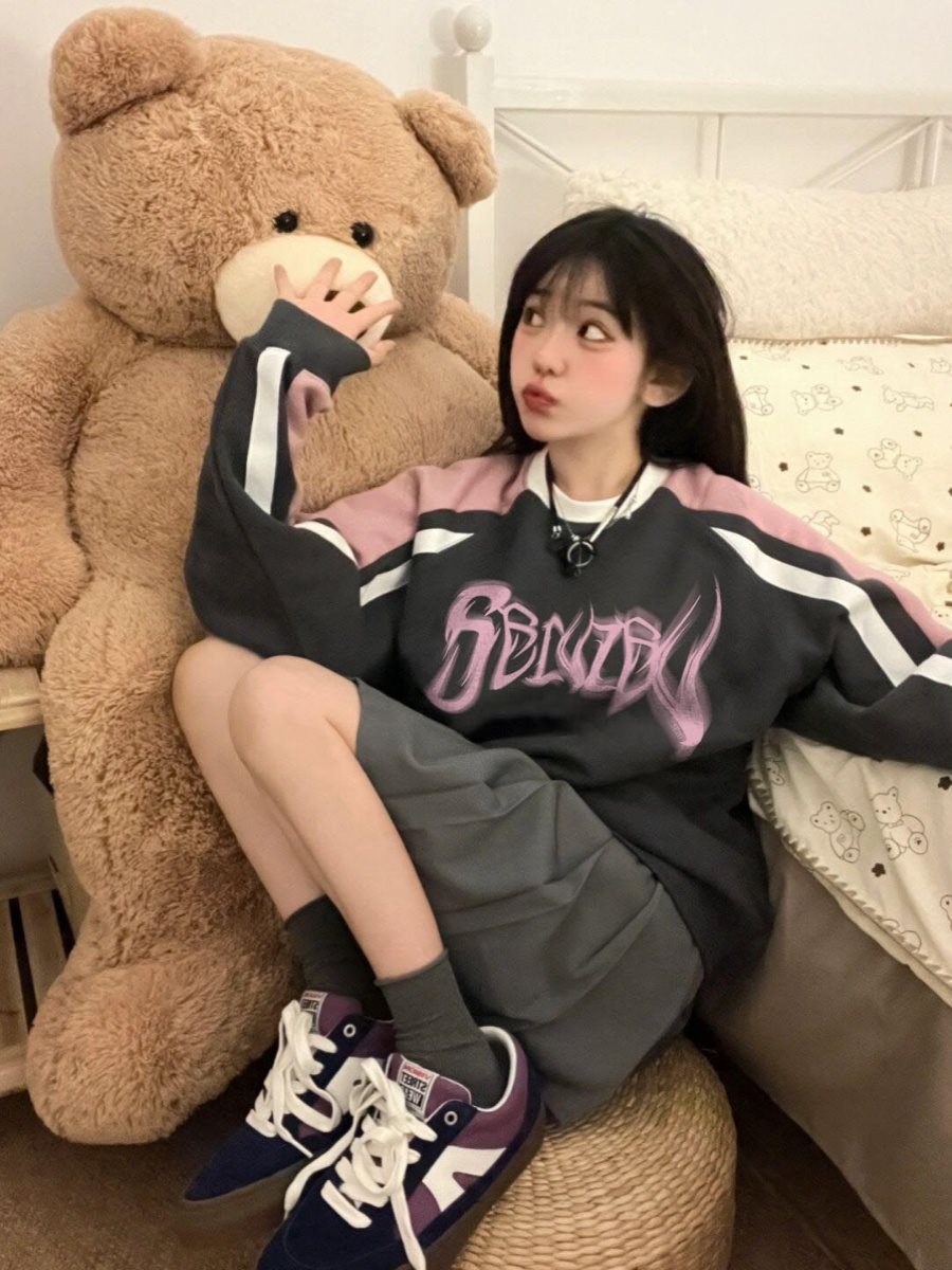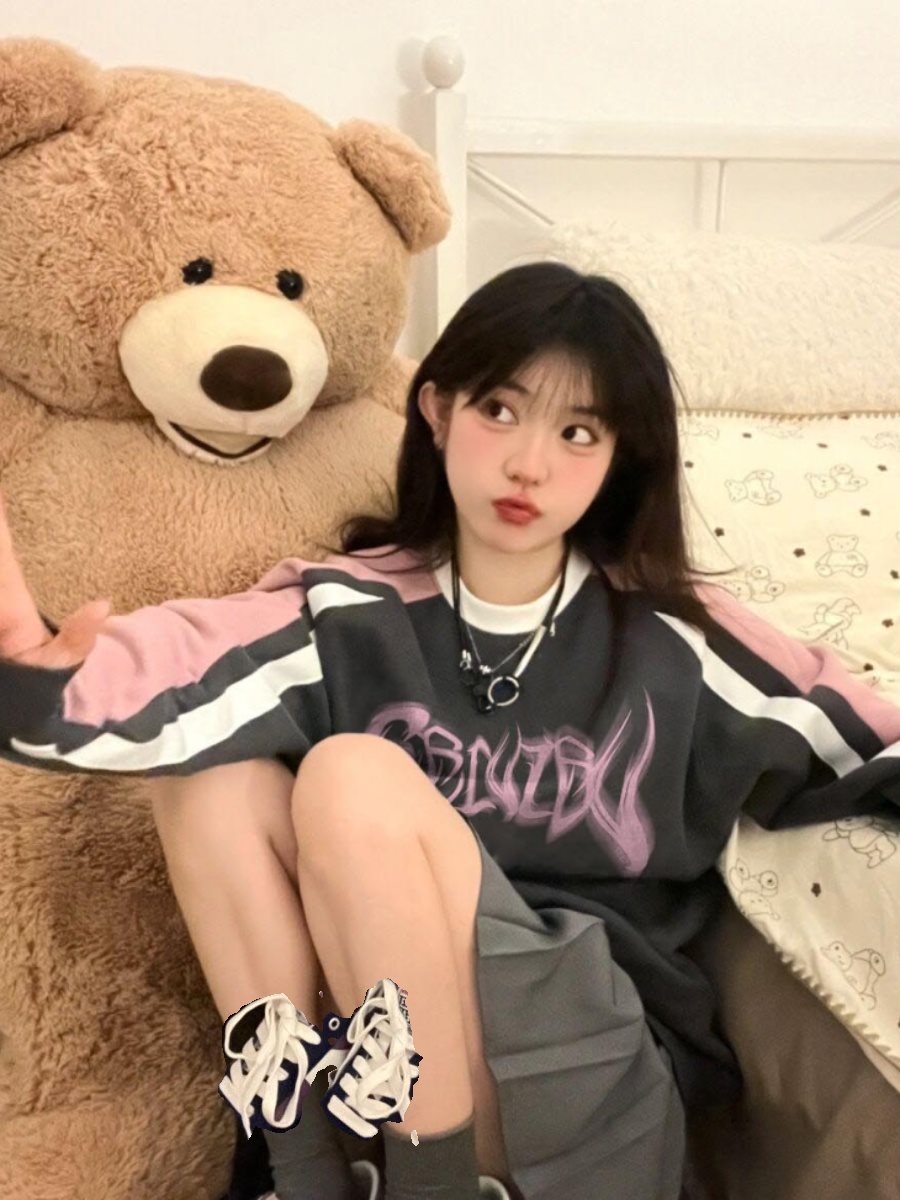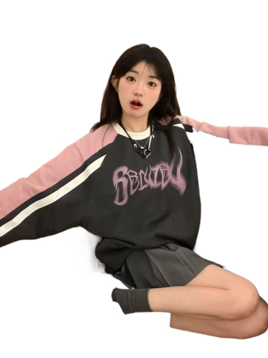 | nameOriginal | American vintage Contrast Raglan Sleeve Round Neck Sweatshirt Women's Spring and Autumn Design Sense Niche Loose Stitching Top Trendy |