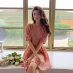 AMI فستان نحيف ذو لون وردي فرنسي جميل