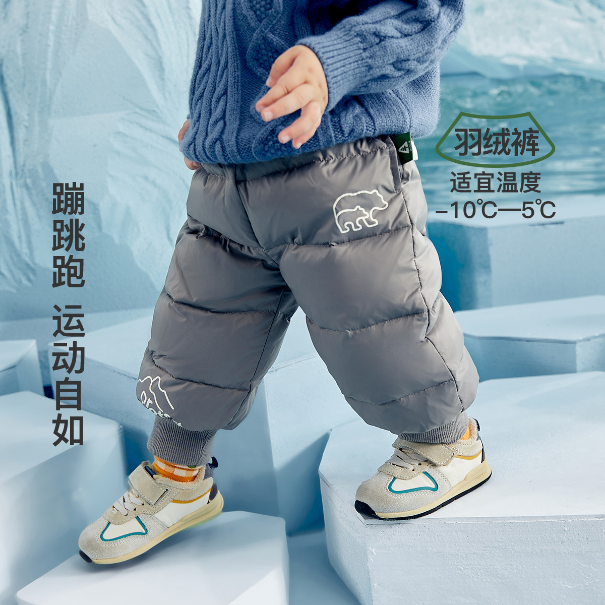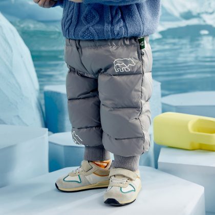 | nameOriginal | Amira children's clothing 2023 Winter new boys and girls solid color printed pants white duck down windproof warm down pants |