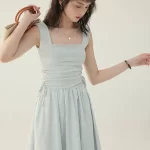 AMUU Beidao stitching summer casual suspender skirt drawstring