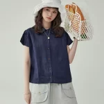 AMUU LO collar vintage single-breasted short-sleeved shirt
