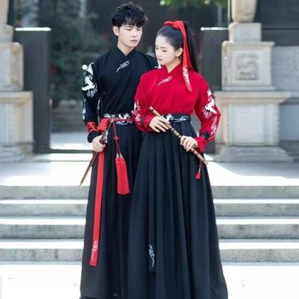 | nameOriginal | Ancient costume Hanfu men and women couples Chinese style chivalrous Han element student class clothing games opening dance performance clothing |