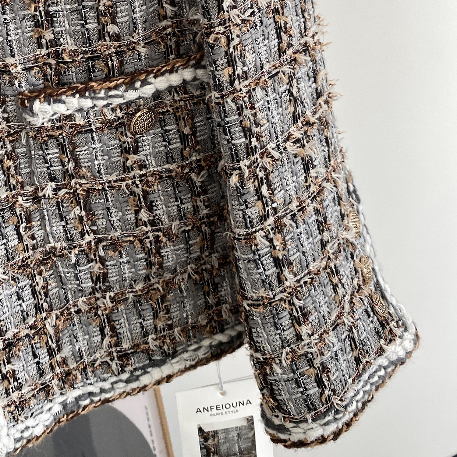 | nameOriginal | Anfei Ona spring and autumn French woven tweed brown gray plaid three-dimensional exquisite Chanel coat |
