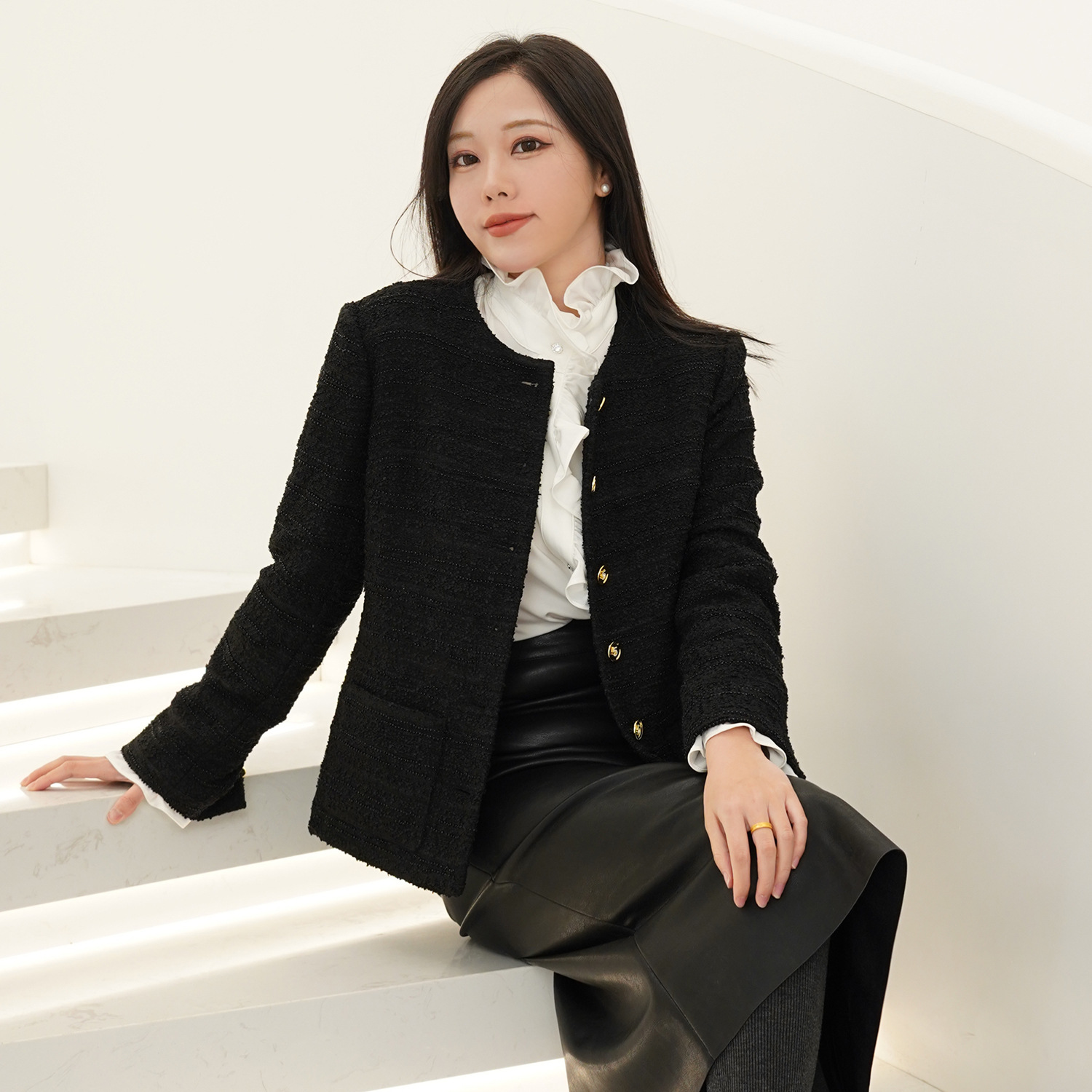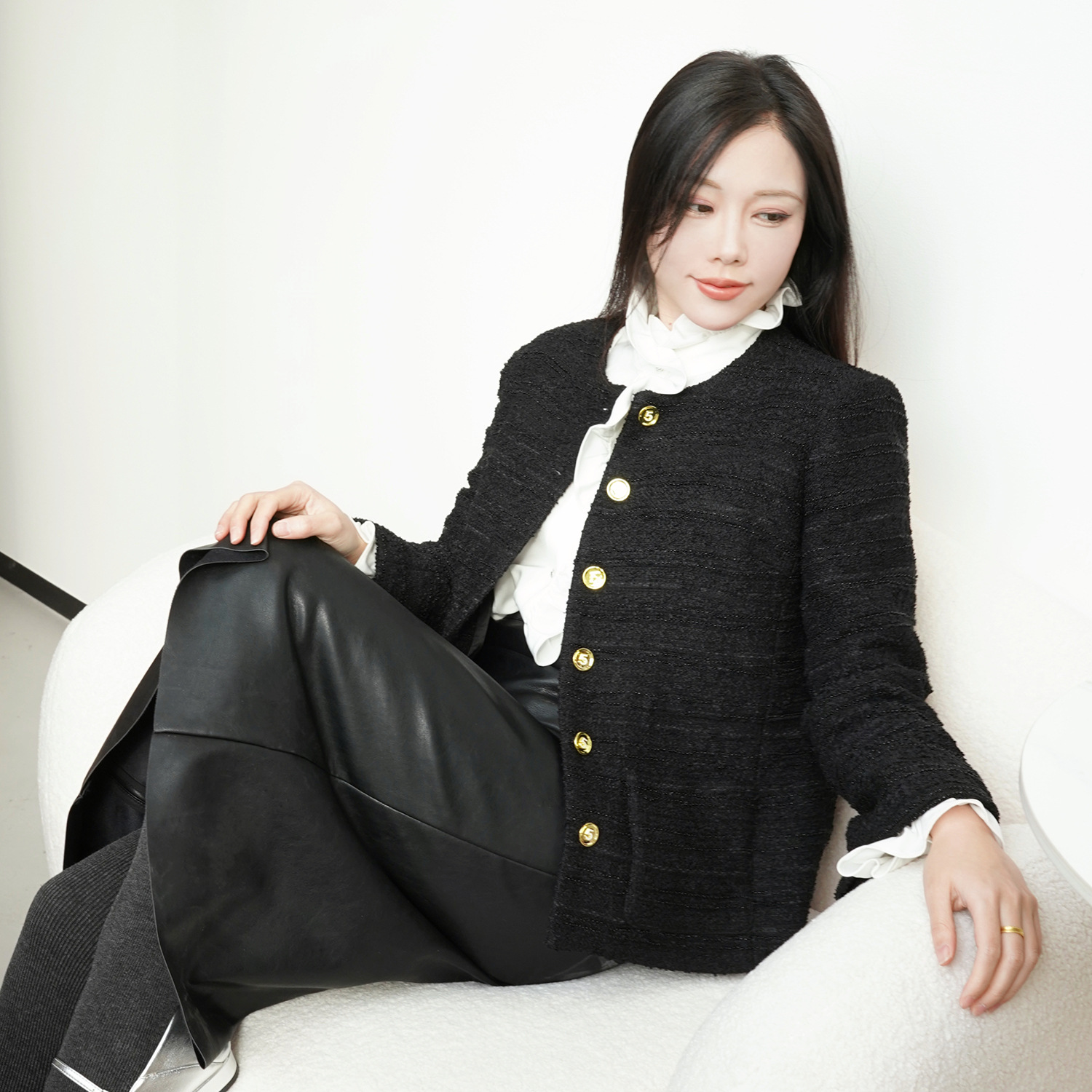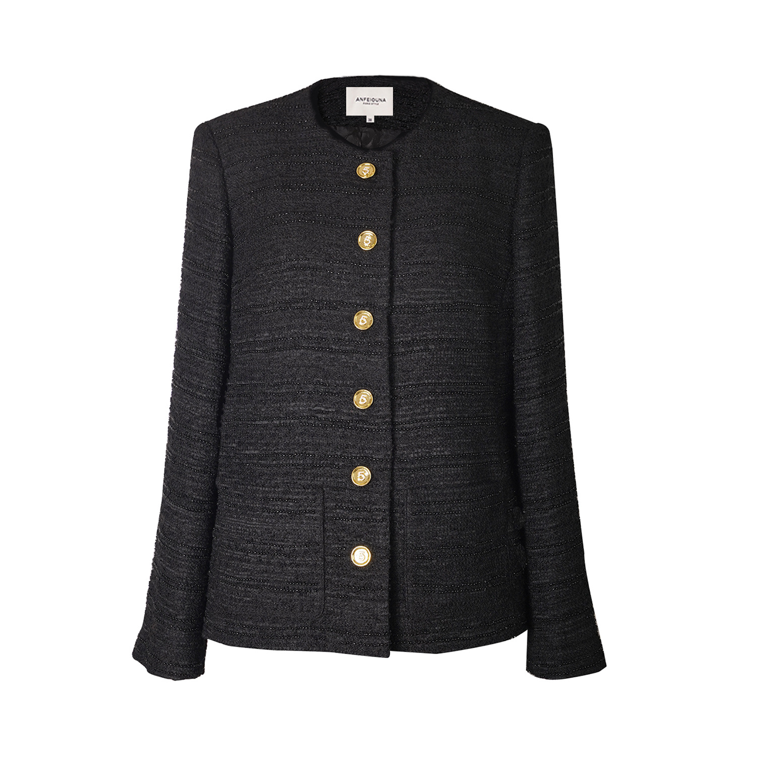 | nameOriginal | Anfiona 2024 New French Style Tweed Vintage Black Gold Handmade Beaded Heavy Metal Women's Coat |
