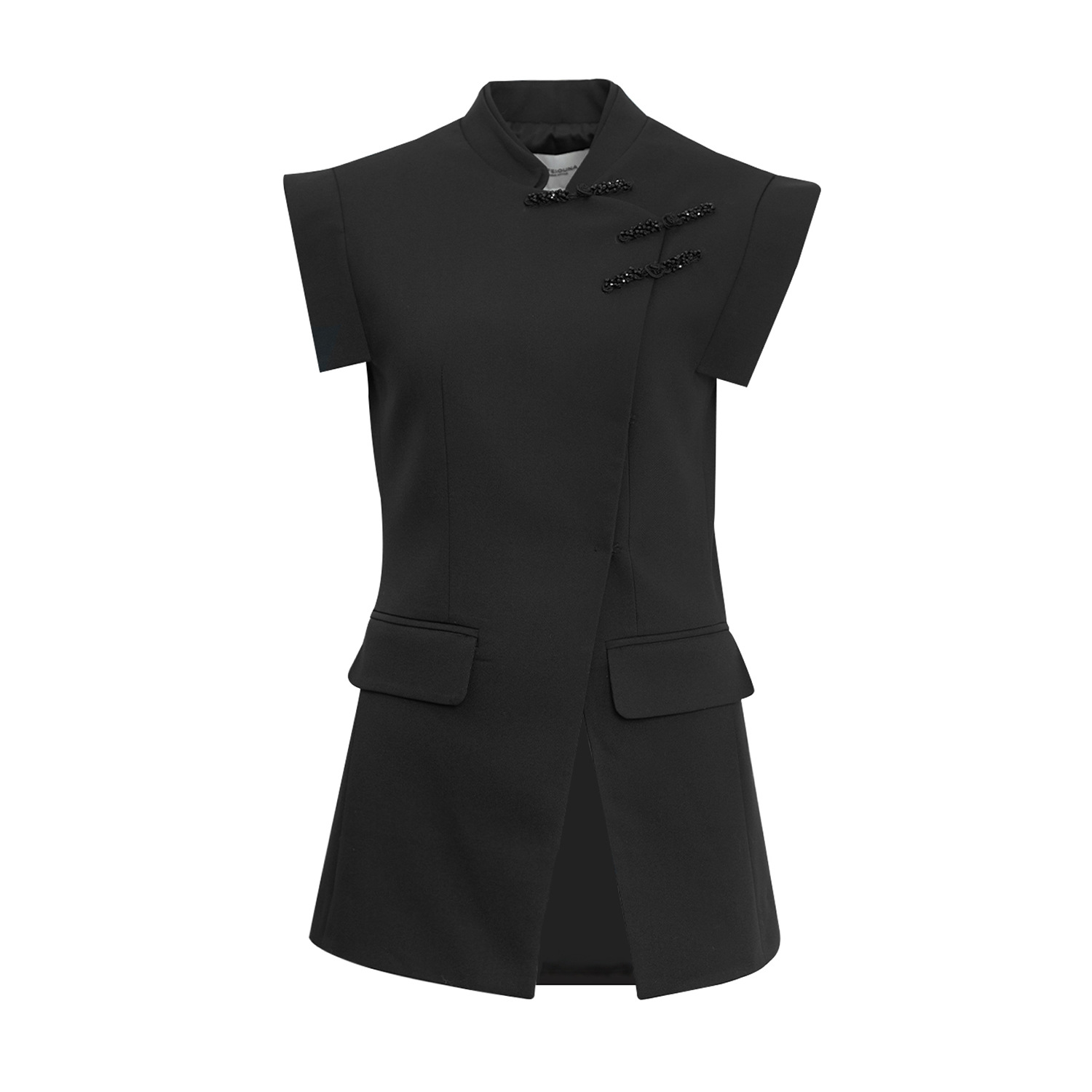 Anfiona 2024 New National Style Cheongsam Stand Collar New Chinese Style Button Three-dimensional Cuff Black Vest Women's Vest