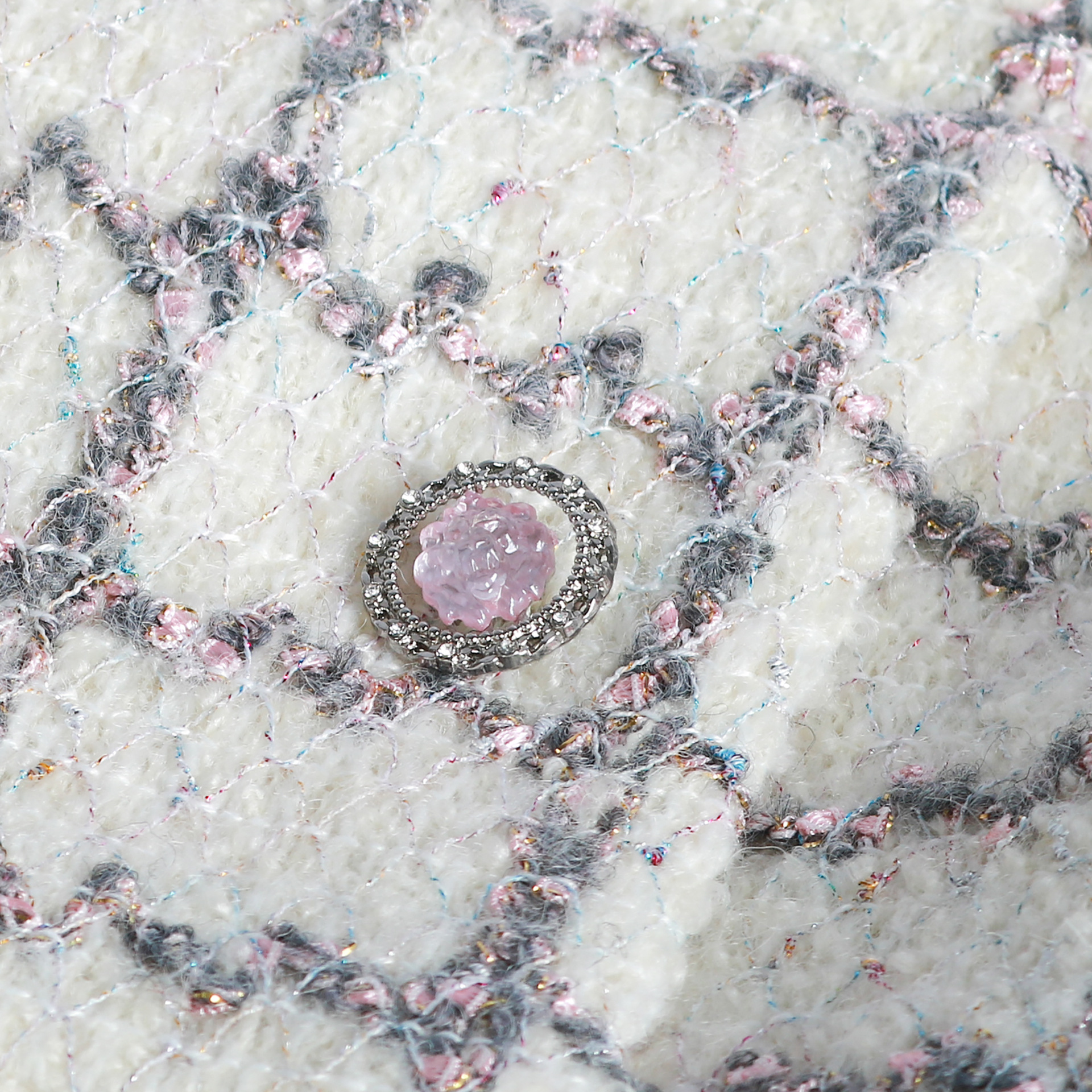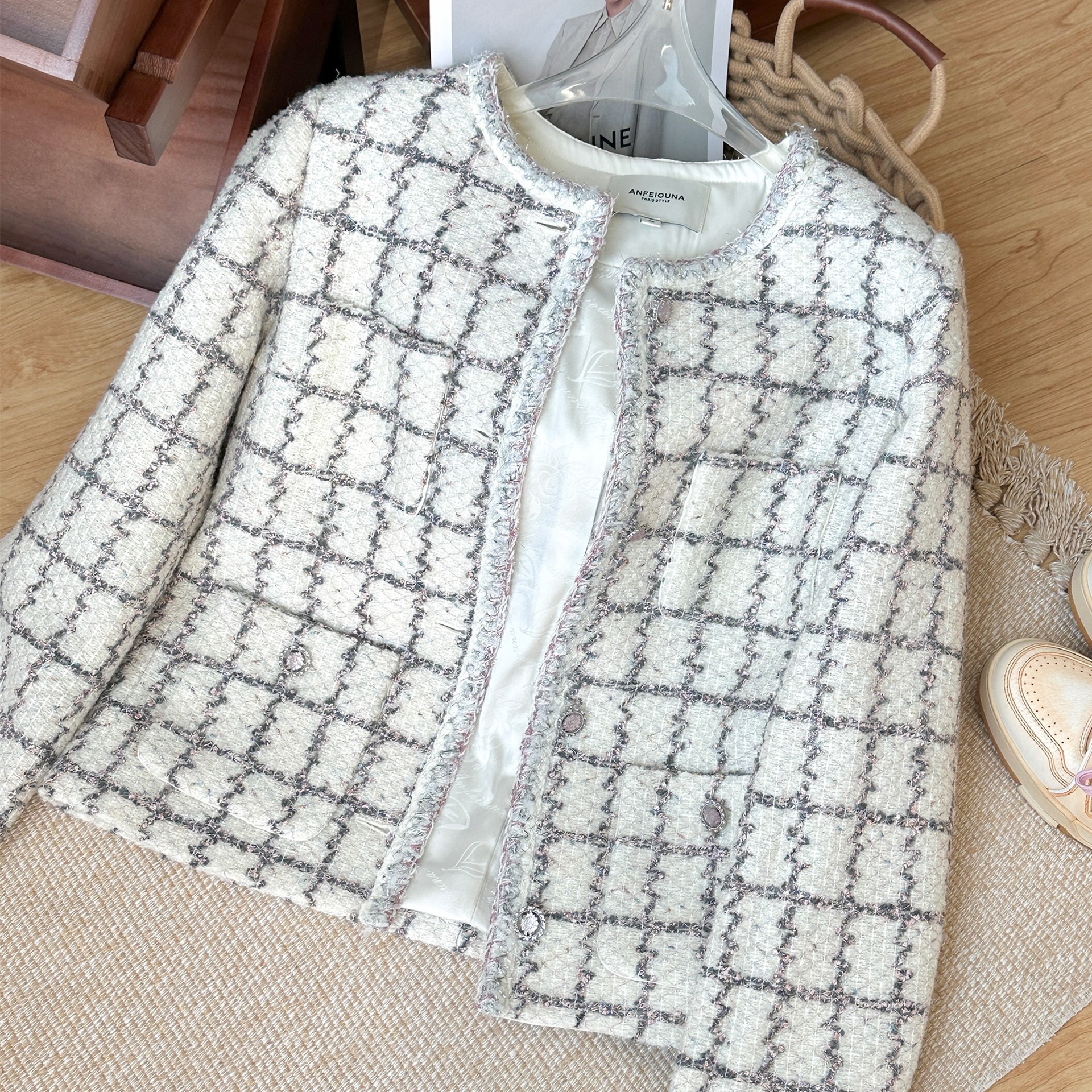 Anfiona 2024 Women's New French Style Fragrant Wool Blend Tweed Pink Hair Lace Coat