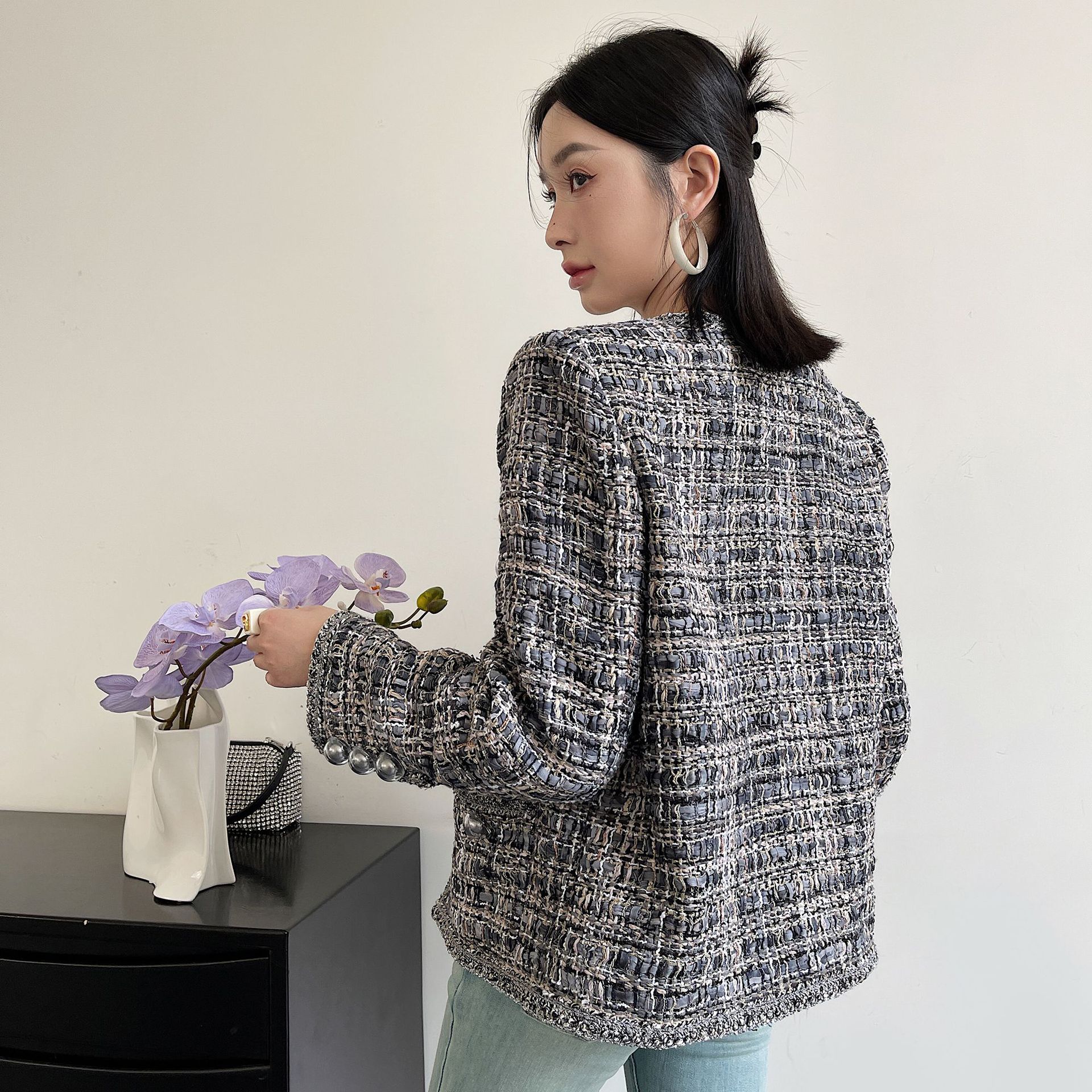 | nameOriginal | Anfiona Spring and Autumn New French Style Cotton and Polyester Blended Tweed Round Neck Lace Women's Coat with Hidden Buckle |