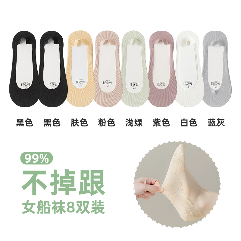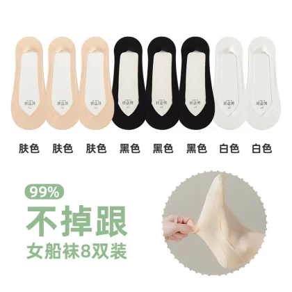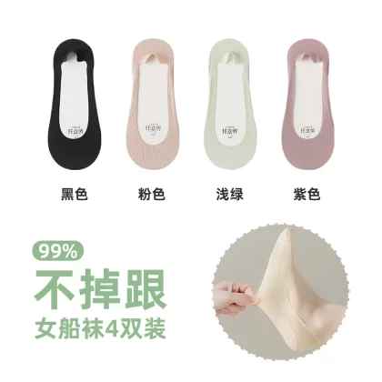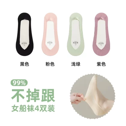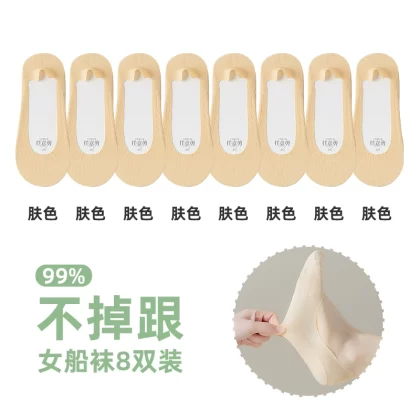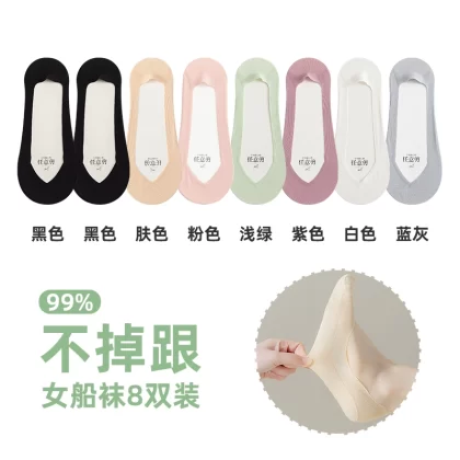 Anjiren women's non-slip solid color summer high heels boat socks