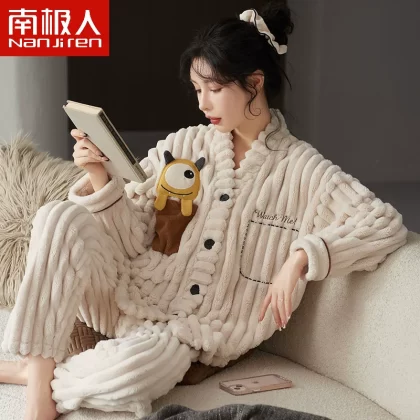 | nameOriginal | Antarctic coral velvet pajamas for women winter thickened plus velvet 2024 new cute flannel warm suit |