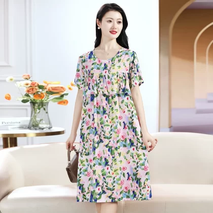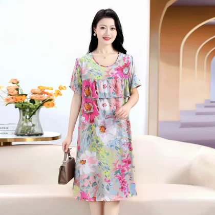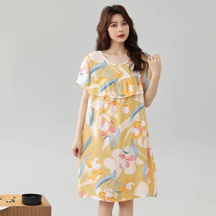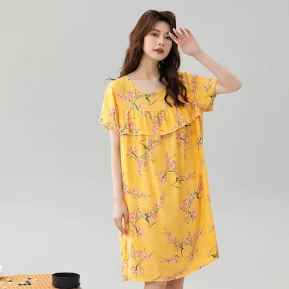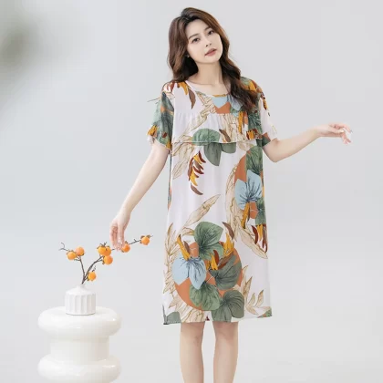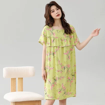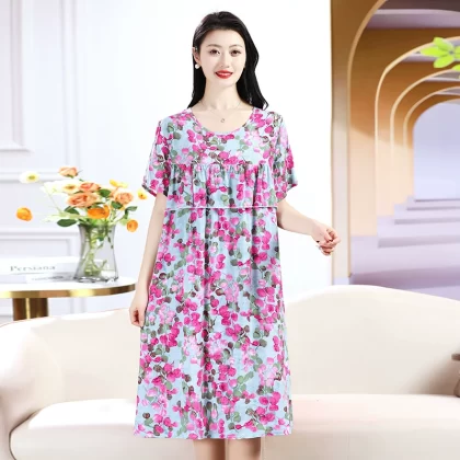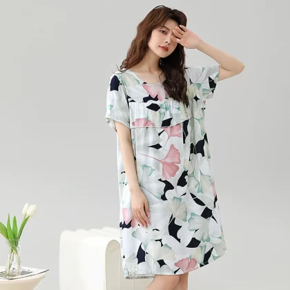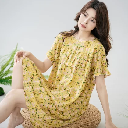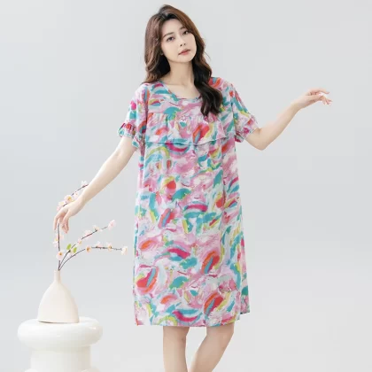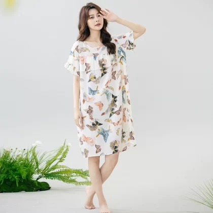 | nameOriginal | Anti-bulge pajamas cotton silk nightgown summer women's 2024 new women's loose home wear cotton silk dress |