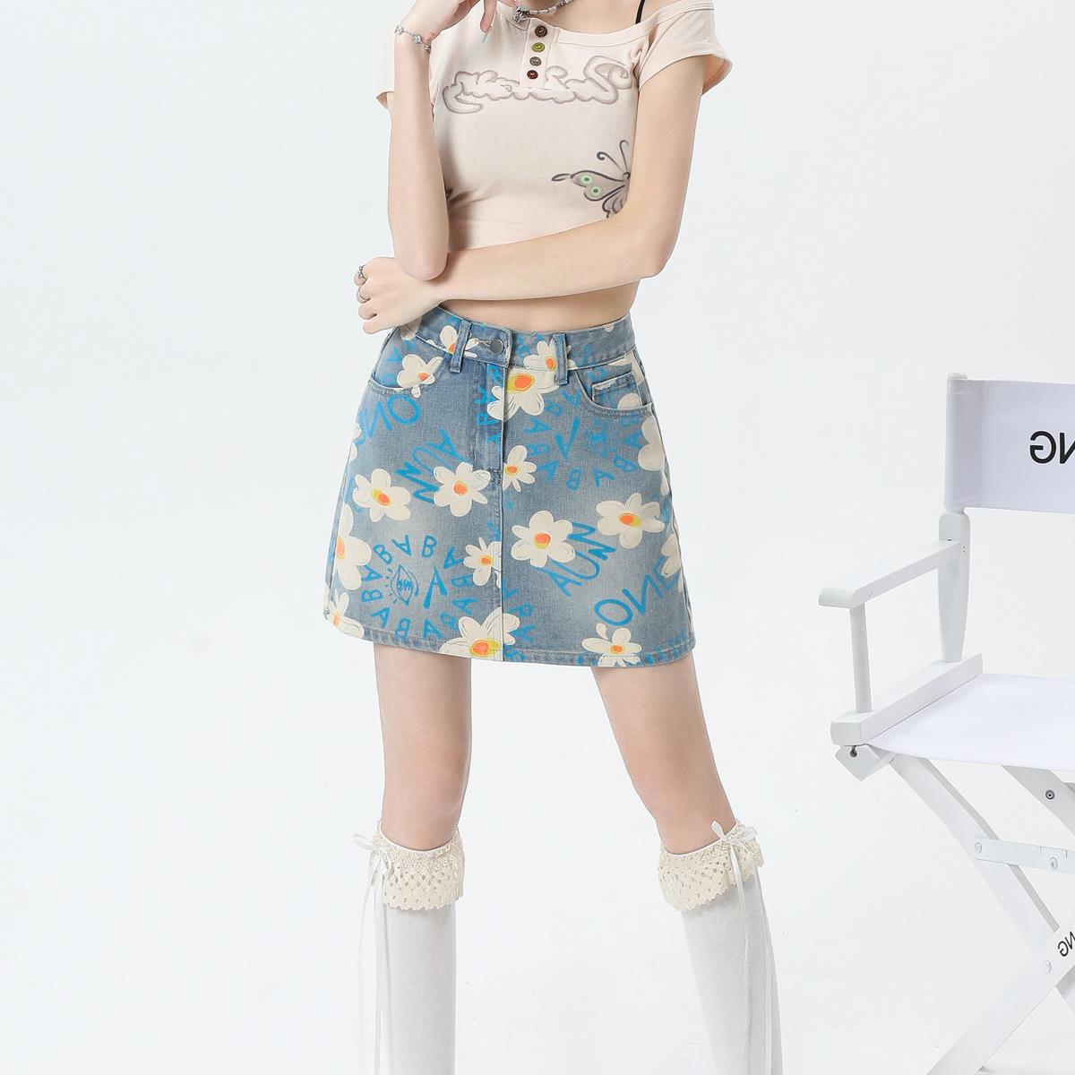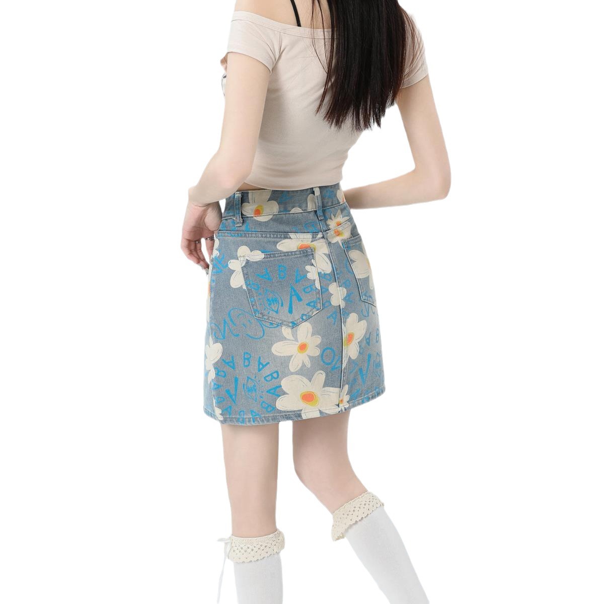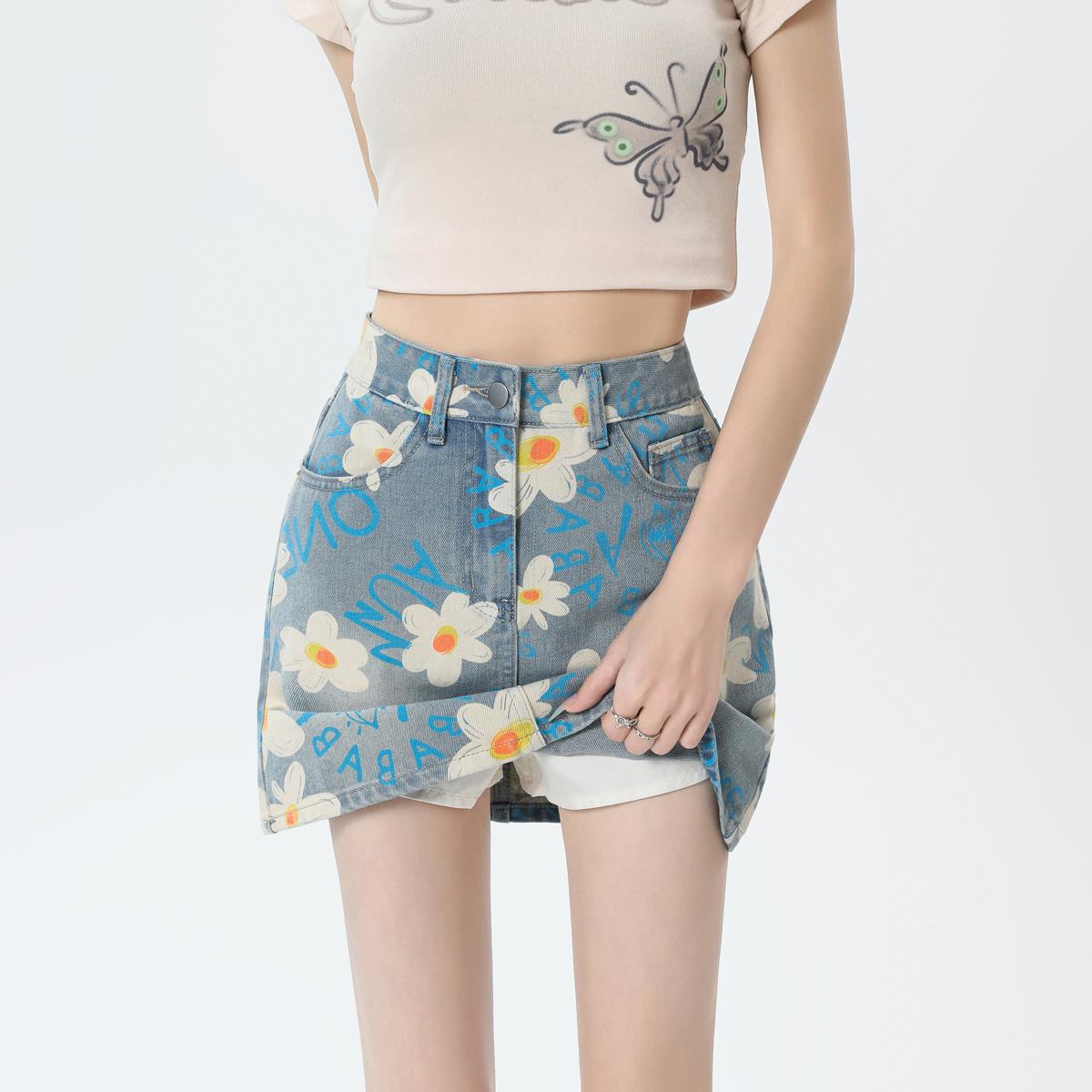 | nameOriginal | Anti-glare Printed Denim Skirt 2024 Summer New High Waist Slim A- line Hip Skirt Loose 4-point Skirt |