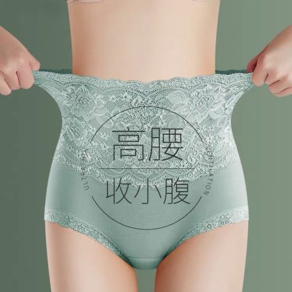 Anti-prick skin double-layer inner high waist lace underwear women's mulberry silk crotch cotton hip belly pants women's underwear autumn