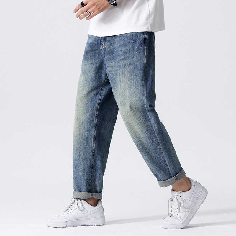 Anyang vintage jeans men's fashion brand 2024 spring loose straight American casual Pu handsome tapered wide-leg trousers