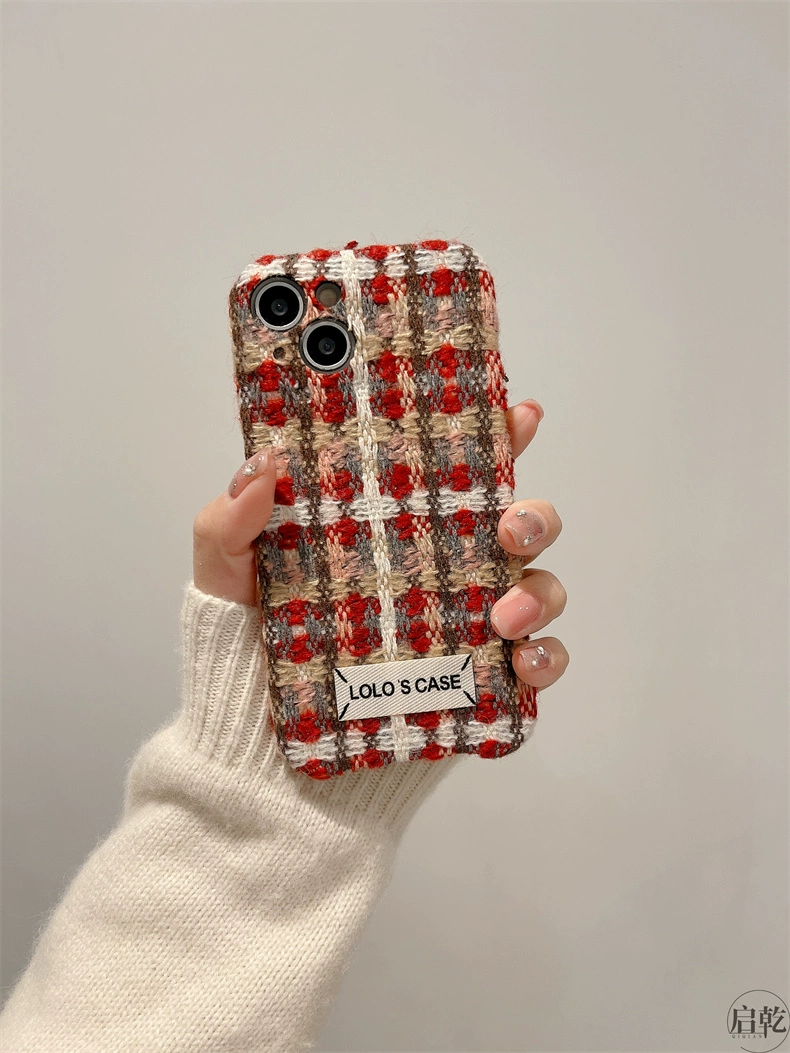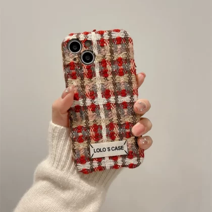 | nameOriginal | Apple plaid mobile phone case niche burgundy velvet |