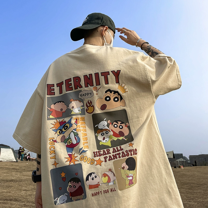 Apricot 250g heavyweight short-sleeved T-shirt men's summer American hiphop trendy brand handsome oversize retro half-sleeve