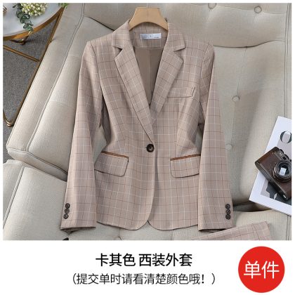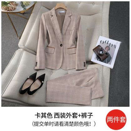 apricot Plaid Suit suit Women's British Style Temperament Capable Fashion High-end Business Wear Business Work Clothes Pants