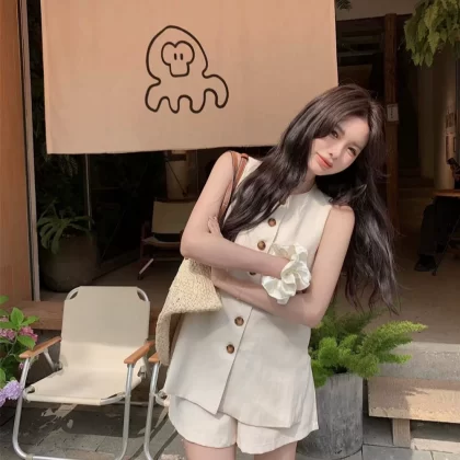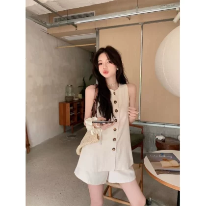| nameOriginal | Apricot single-breasted vest and wide-leg shorts two-piece set |