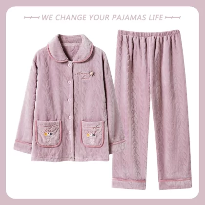 | nameOriginal | Arctic velvet pajamas for women in autumn and winter long-sleeved coral velvet thickened plus velvet winter flannel large size home wear set |