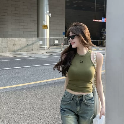 | nameOriginal | Army green short suspender hottie sexy sleeveless embroidery |